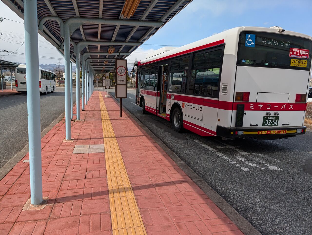 遠刈田公民館前バス停から白石蔵王駅へ。
