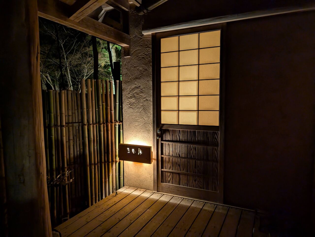 貸切露天風呂 通り雨 雪待ち の入り口には、