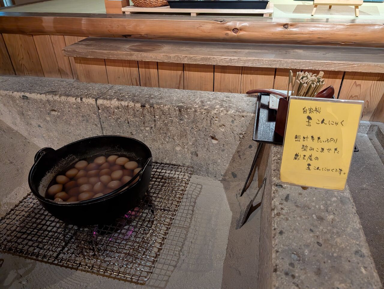 時間ごとに変わる館内サービスは、ビール、笹かまぼこ、ゆで卵・玉こんにゃくと変わっていき、常に楽しませてくれます。