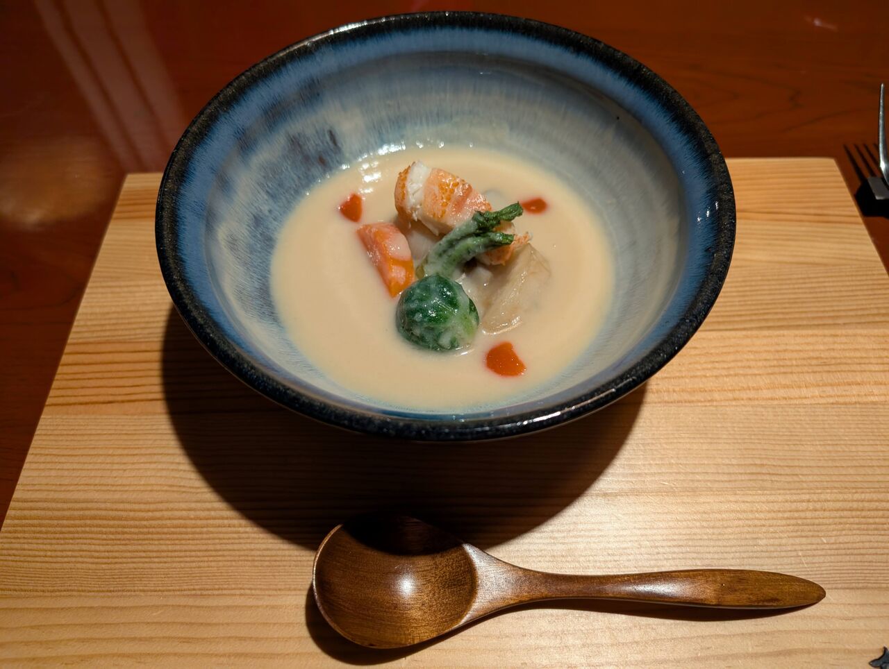 温かい寄せ豆腐、自家製醤油の餡がかけられています。