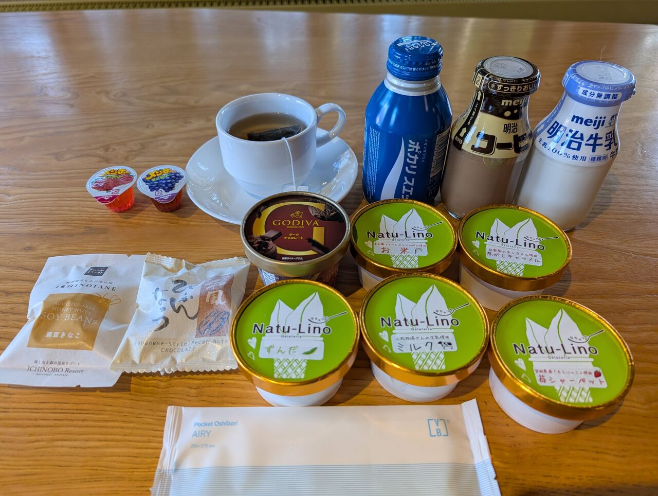 オールインクルーシブの離れの宿。夕食時のドリンクがフリー。小とりサロンでは、ソフトドリンクやお菓子がいつでも置いてあり、
