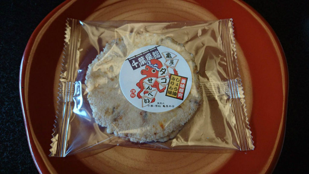 典型的な市販のタコせんべい。