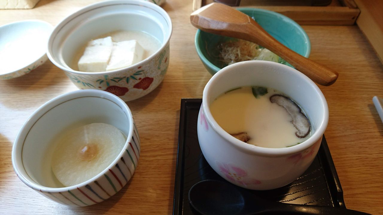 湯豆腐、ふろふき大根、茶碗蒸し。