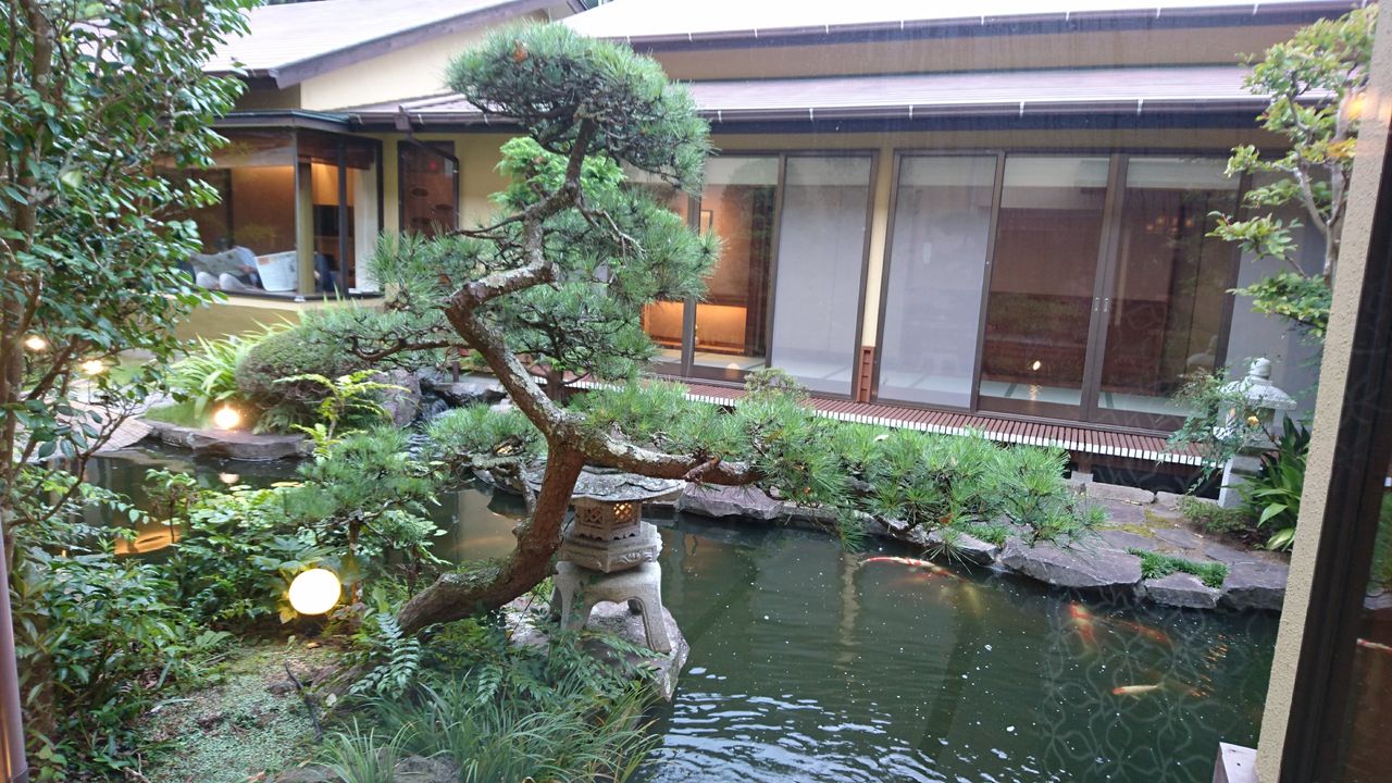 日本庭園を右手に見ながら、