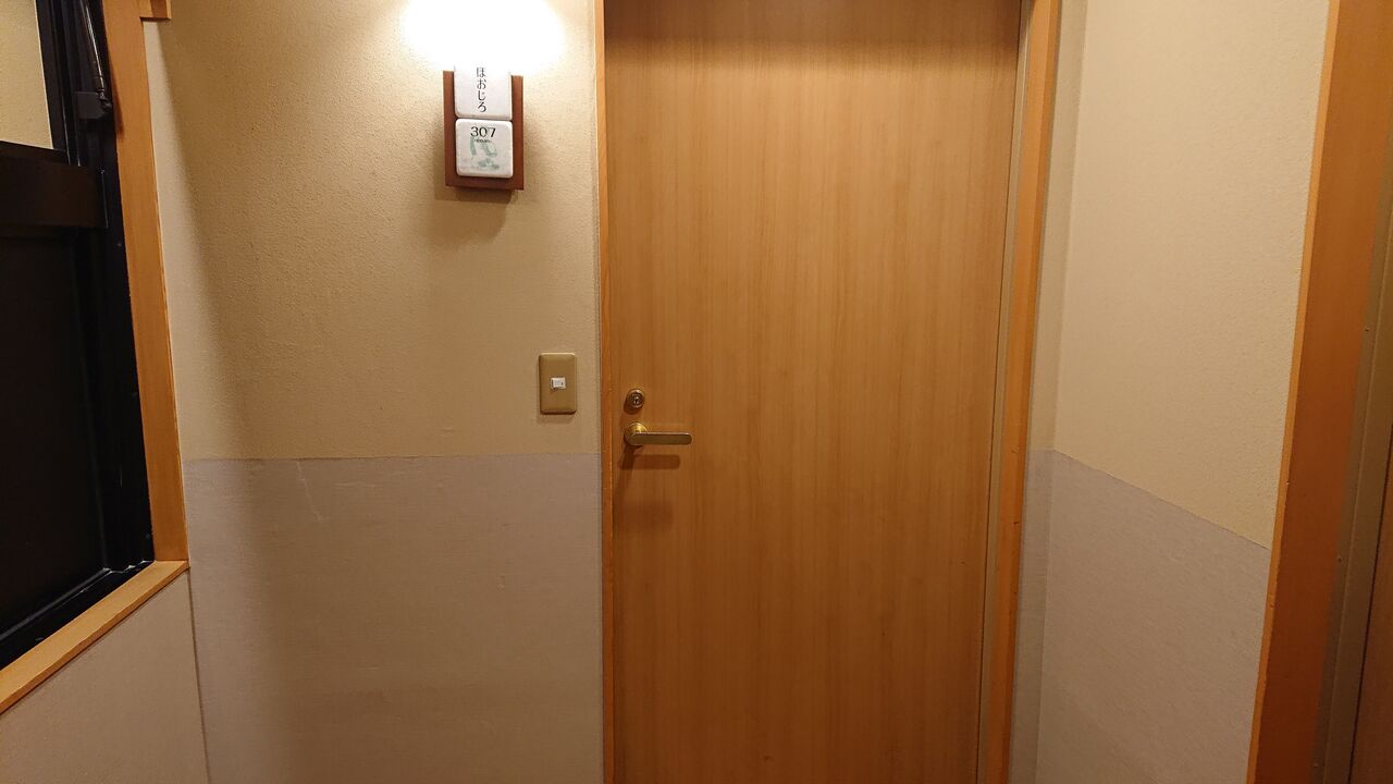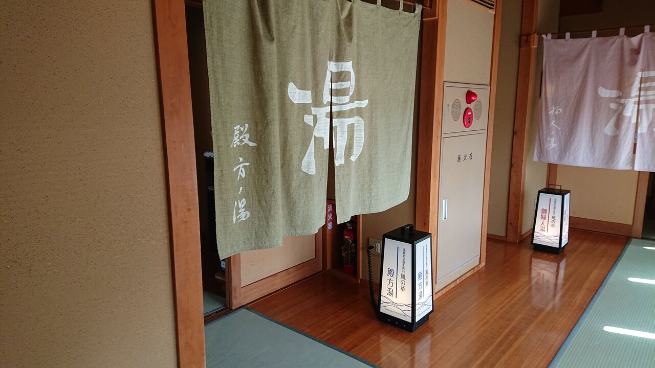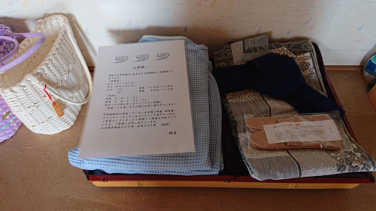 では、浴衣に着替えて、鍵を手に取り、大浴場に向かいます。