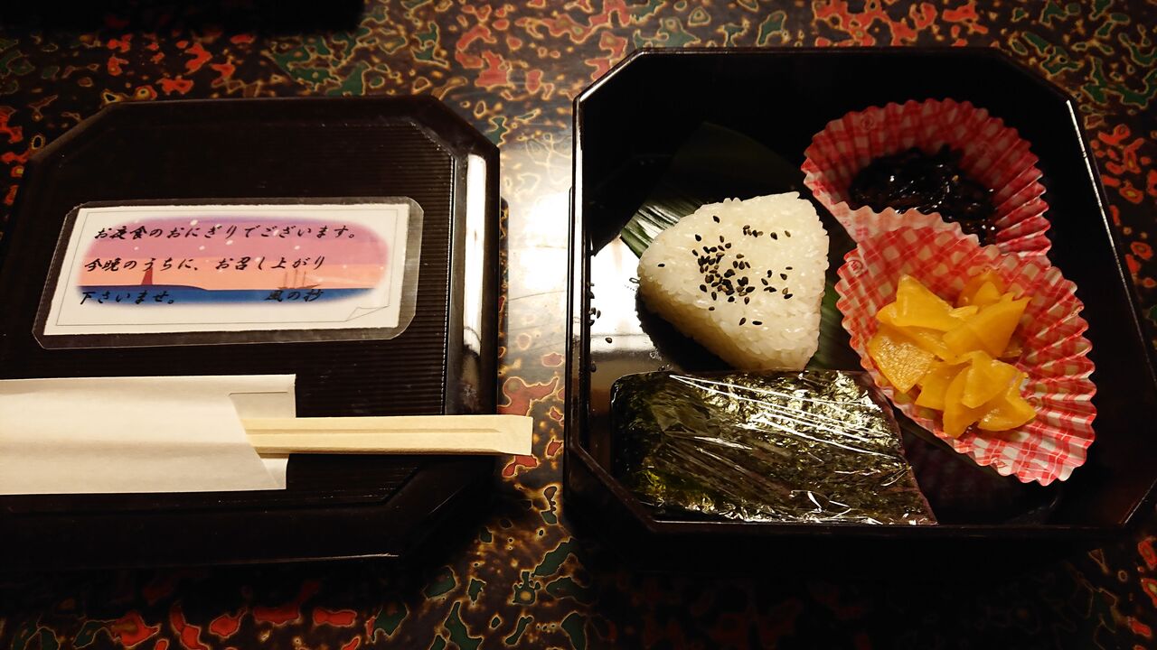 さらに、食後には、夜食用に塩むすびを用意してくれました。