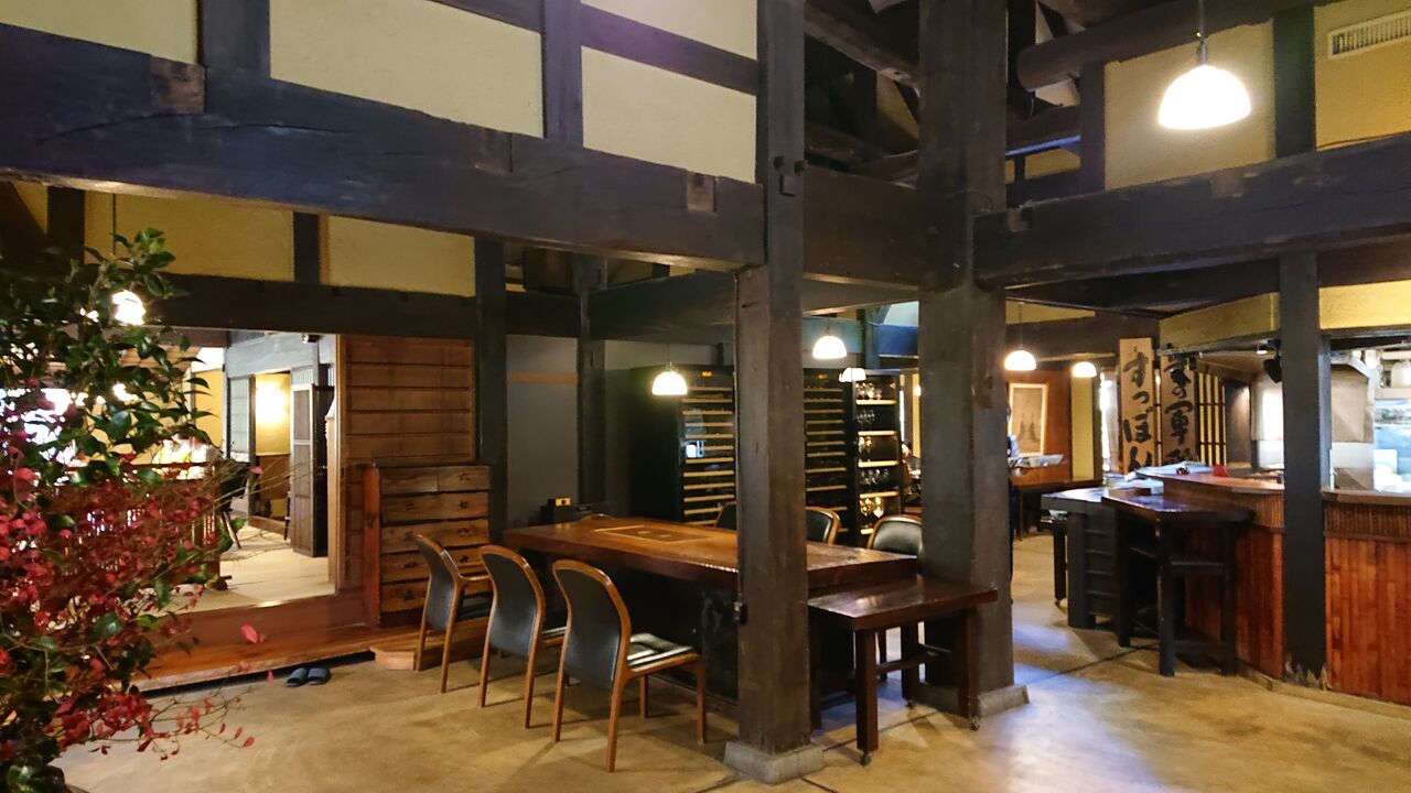 古民家のような木造の建物で、サービススタッフはホテル的。