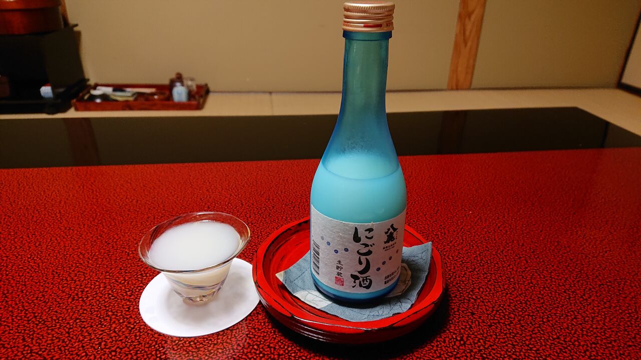 合わせる飲み物は、大分の地酒、八鹿のにごり酒を注文。