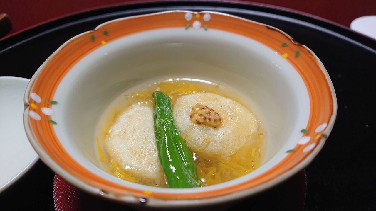 名物椀 栗餅菊花餡掛け 青唐