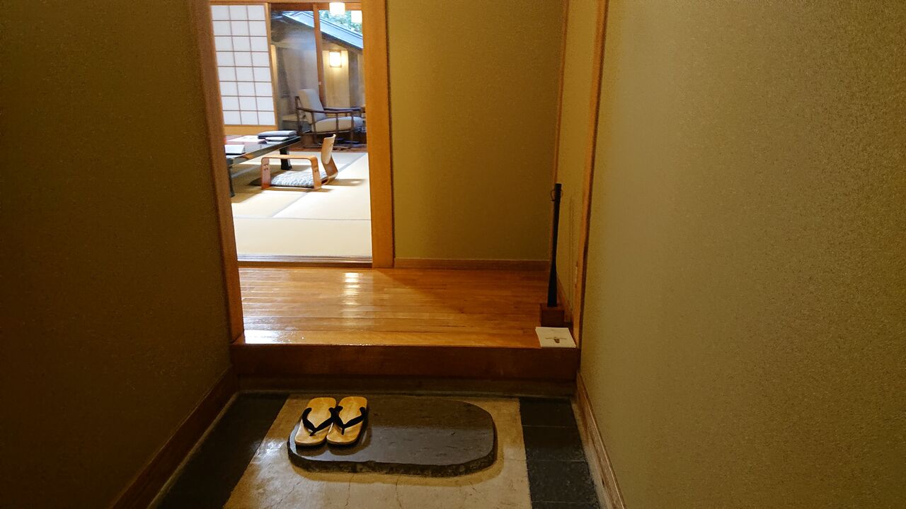 雪駄を履いて部屋を出ます。