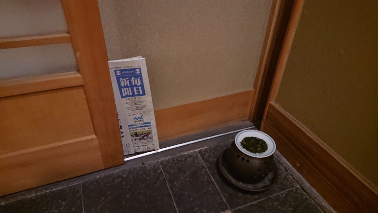 部屋にはドア越しに新聞が届いていました。