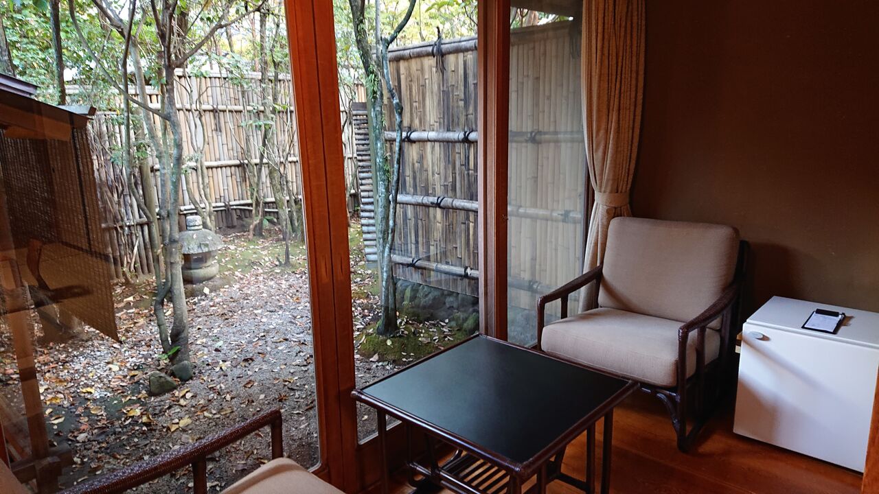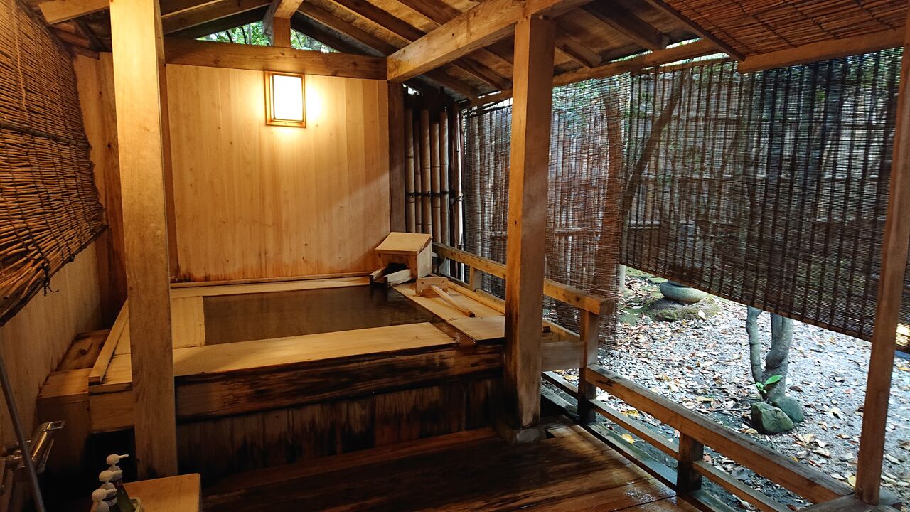 施設も古い。ただ、部屋の露天風呂空間が広いのは、良い点です。