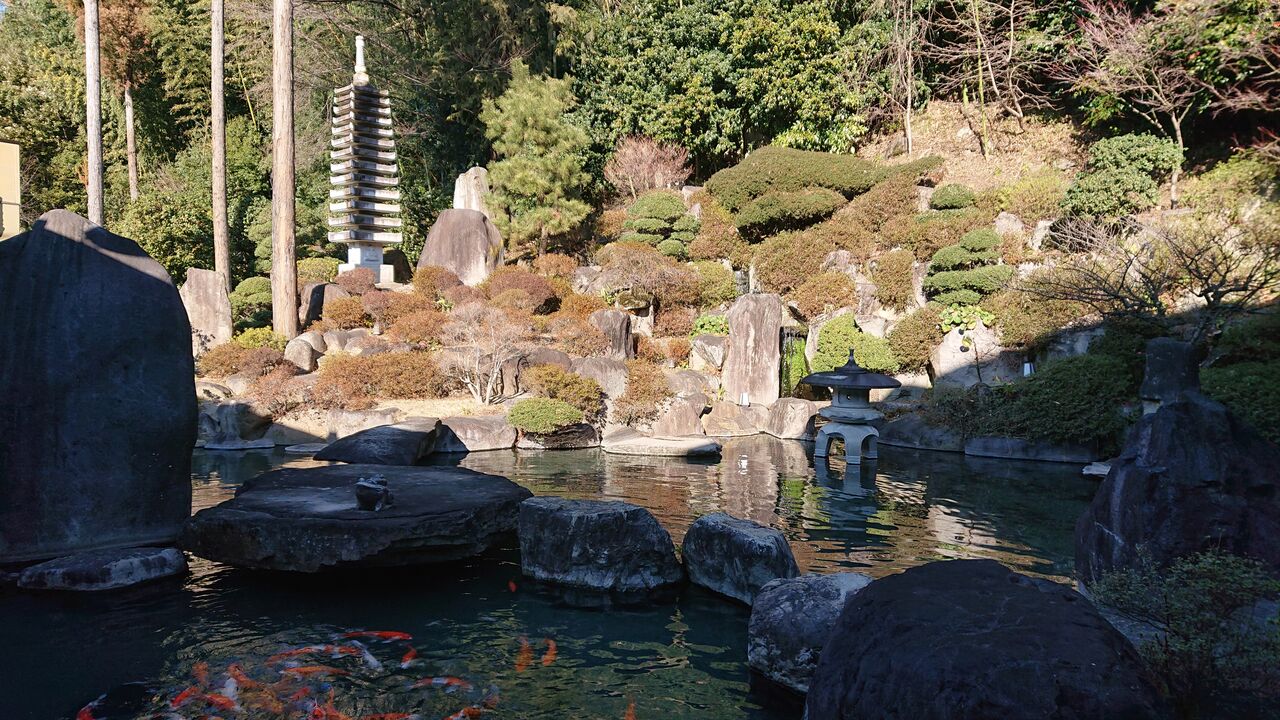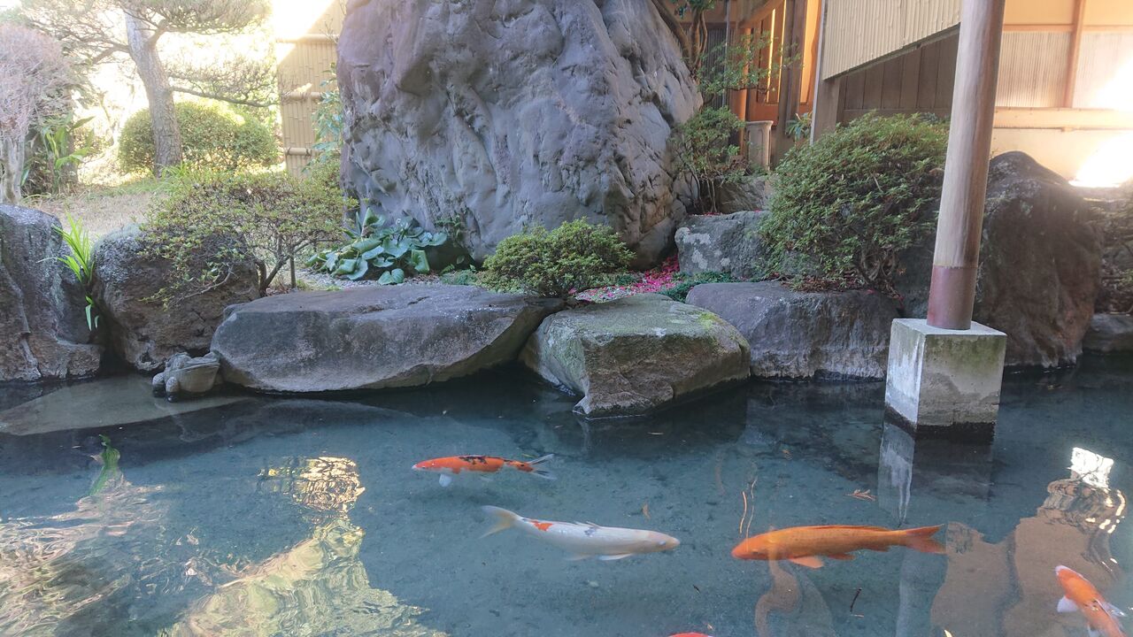 敷地内の日本庭園には、たくさんの鯉がいて、