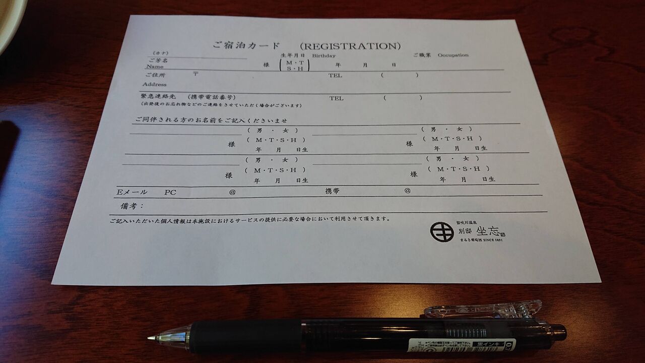宿帳に記入します。
