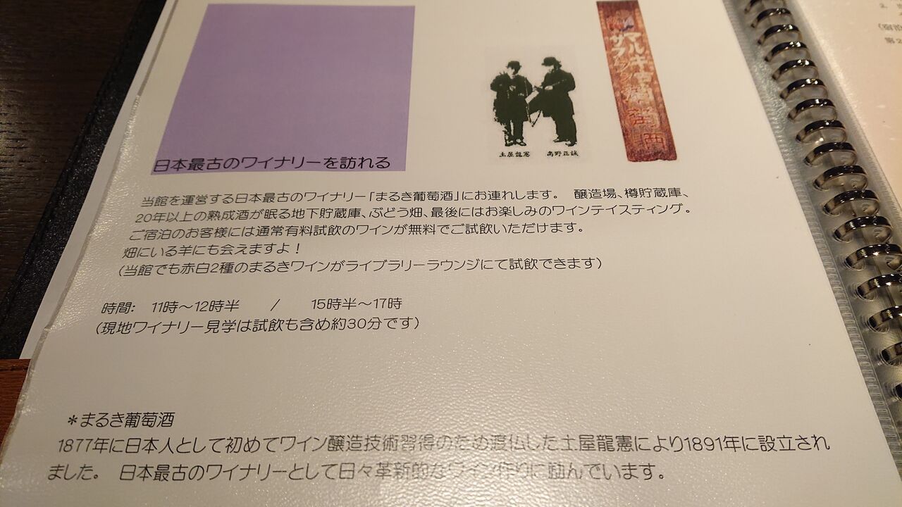 坐忘宿泊者用のアクティビティ「日本最古のワイナリーを訪れる」は無料です。