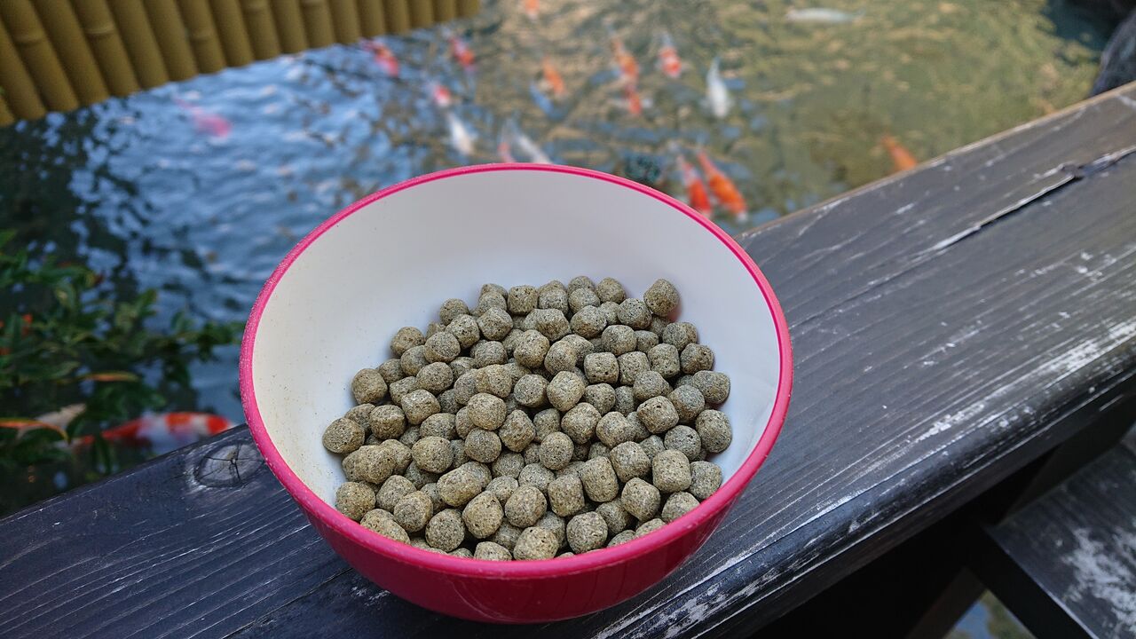 フロントでは、鯉のエサをもらうことができます。