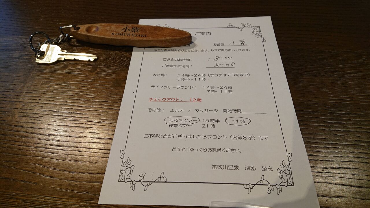 仲居から食事の時間などの案内を渡されます。