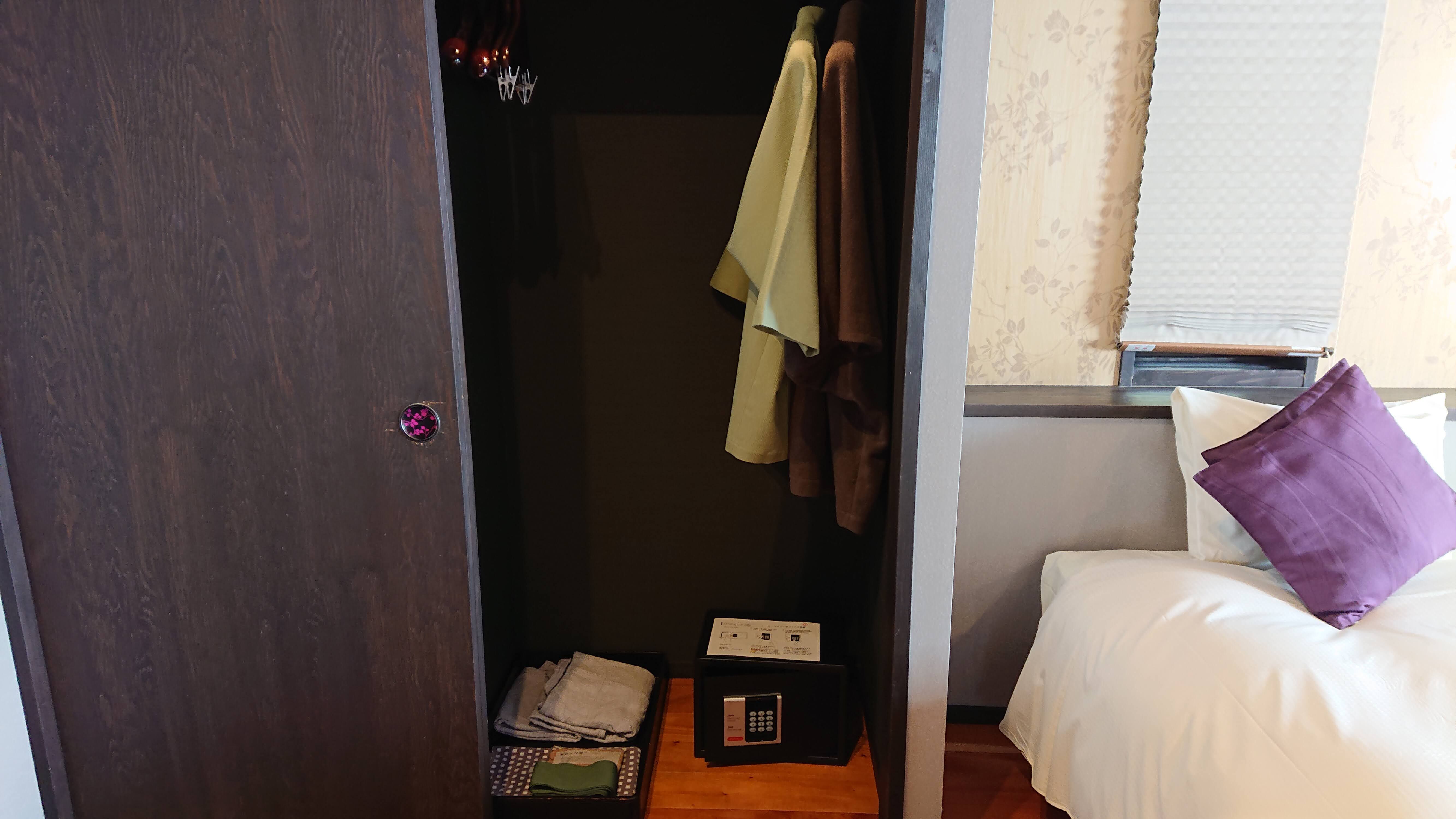 引き戸には、浴衣、丹前に、ブランケット。