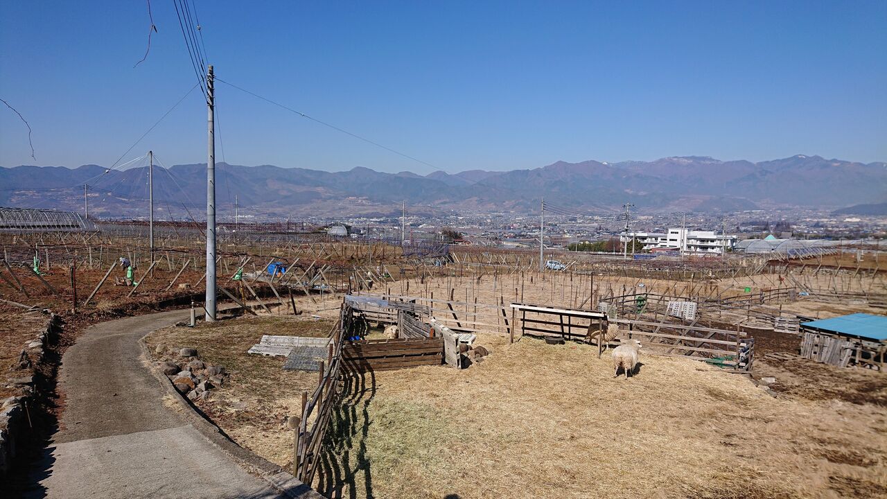 敷地のワイン畑。下草取りのために羊が飼われています。