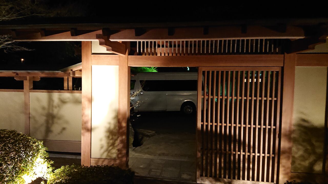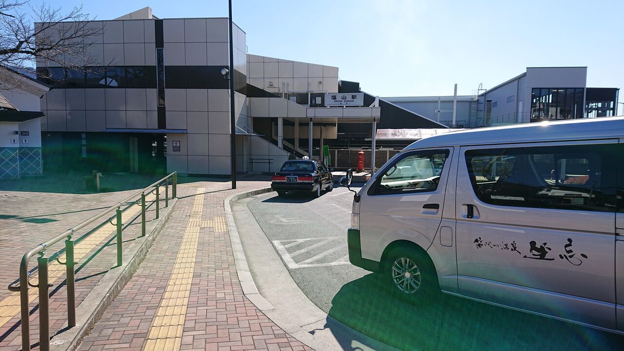 改札で、作務衣のスタッフとミートし、送迎車に乗り込みます。