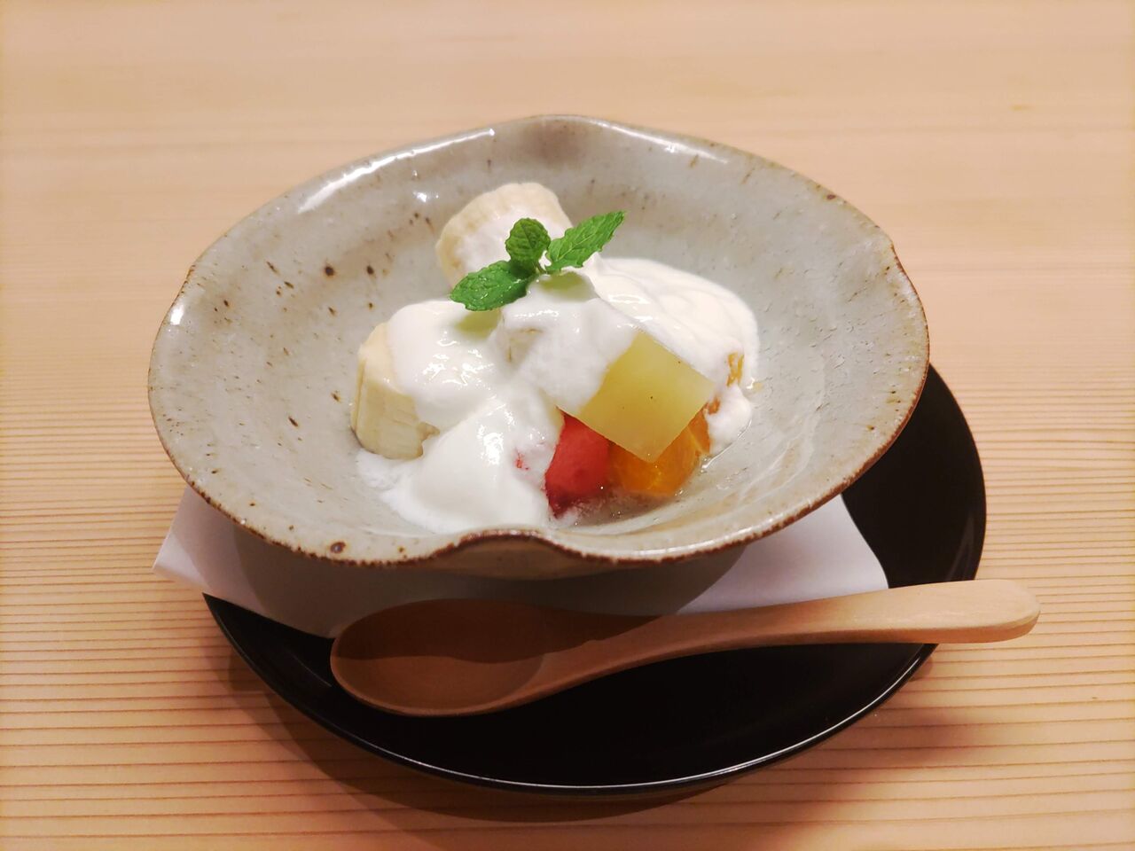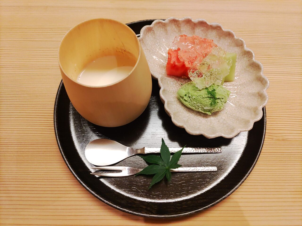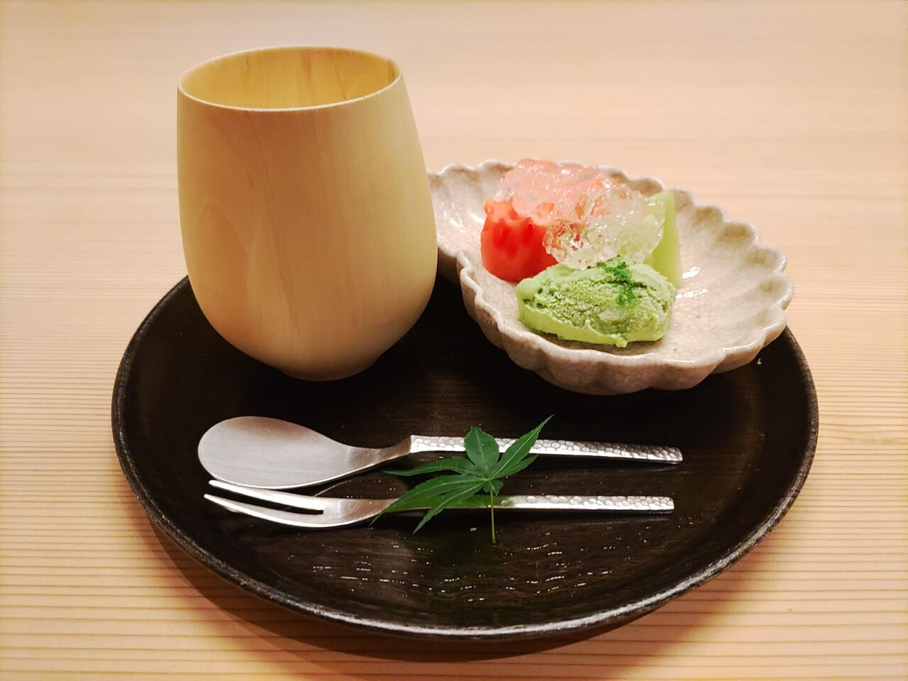 自家製ブラマンジェ、金沢スイカ、メロン、抹茶のアイス、薄蜜のゼリー。