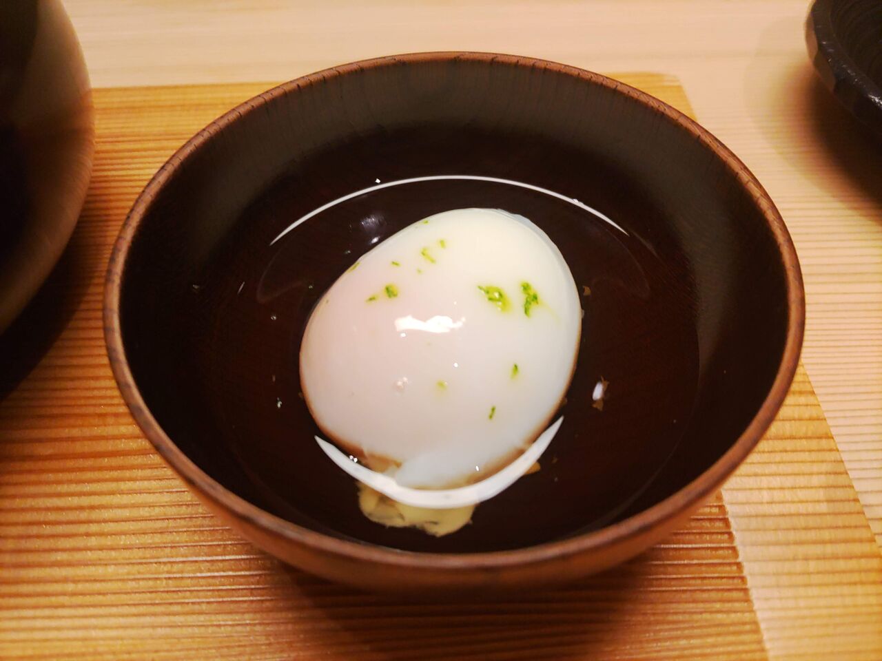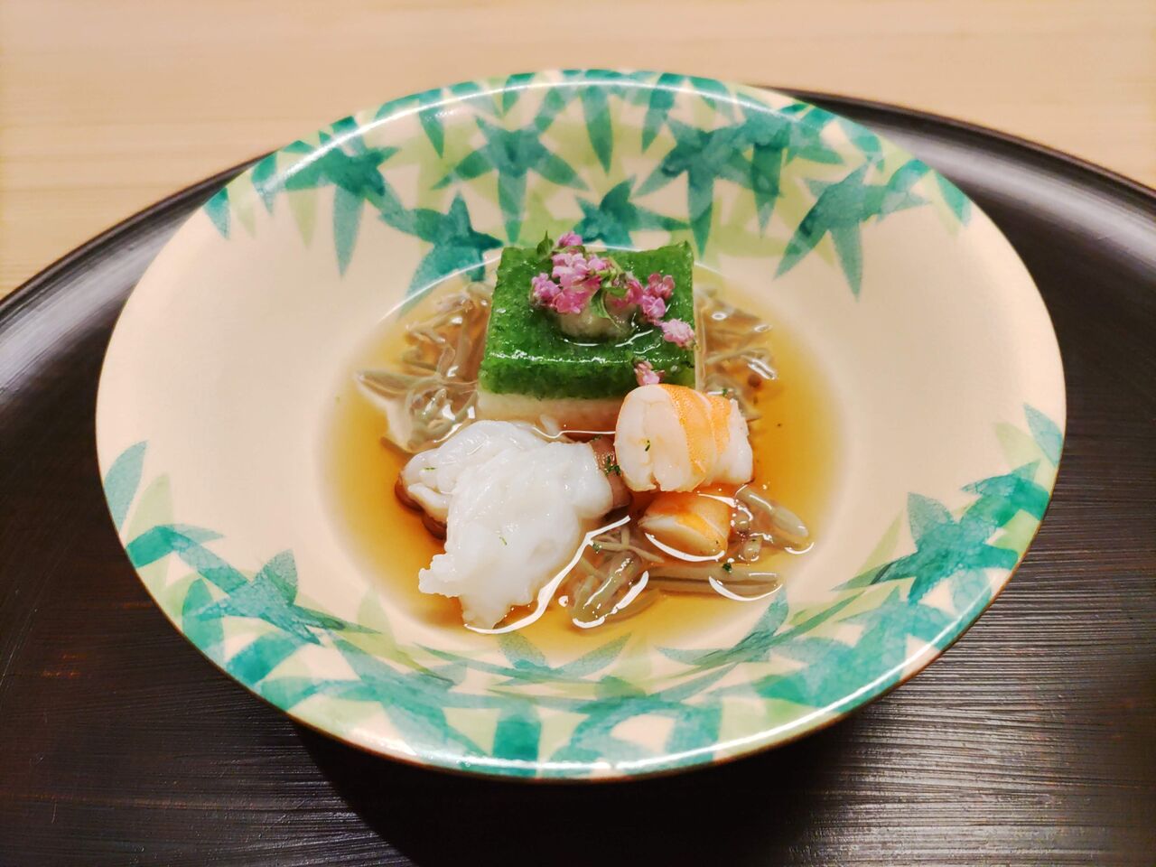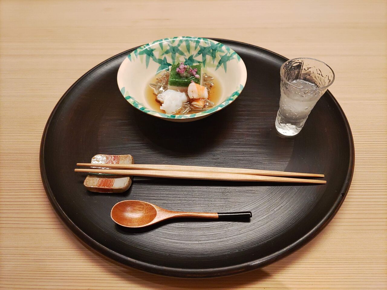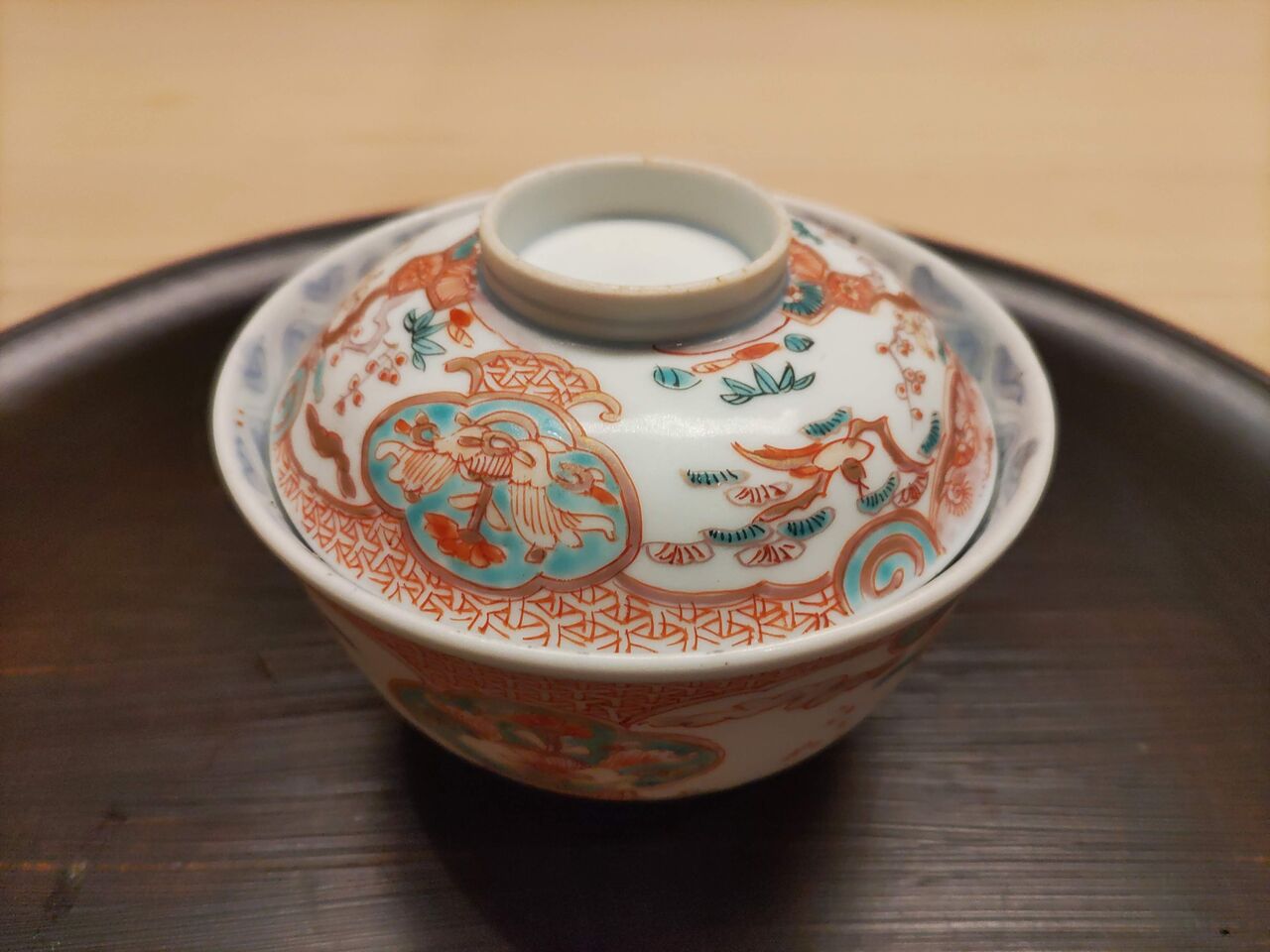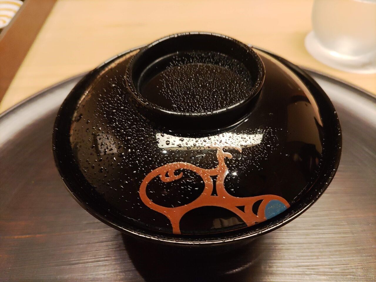 椀に露が打たれています。つくりたてを示す会席料理の作法です。