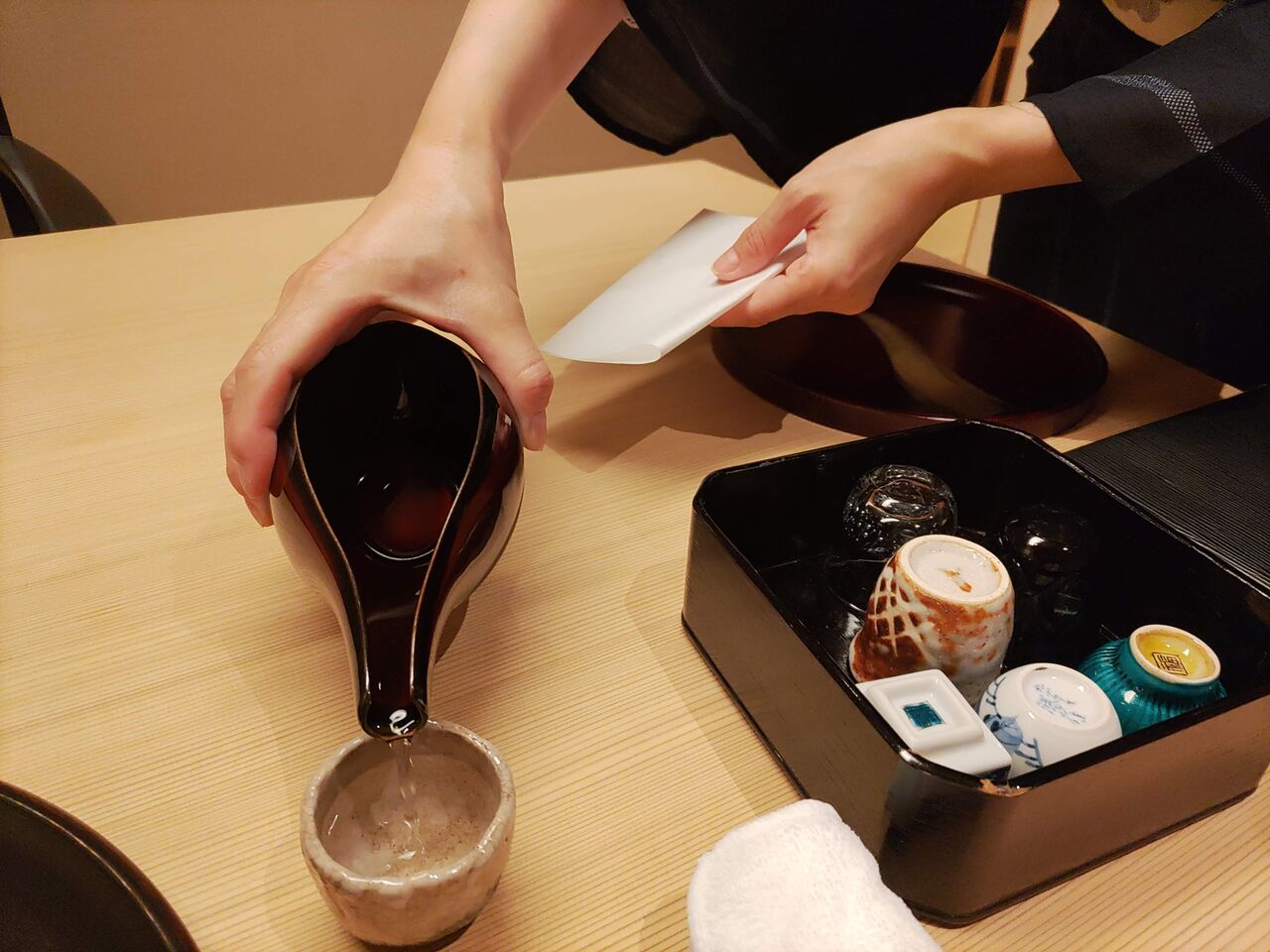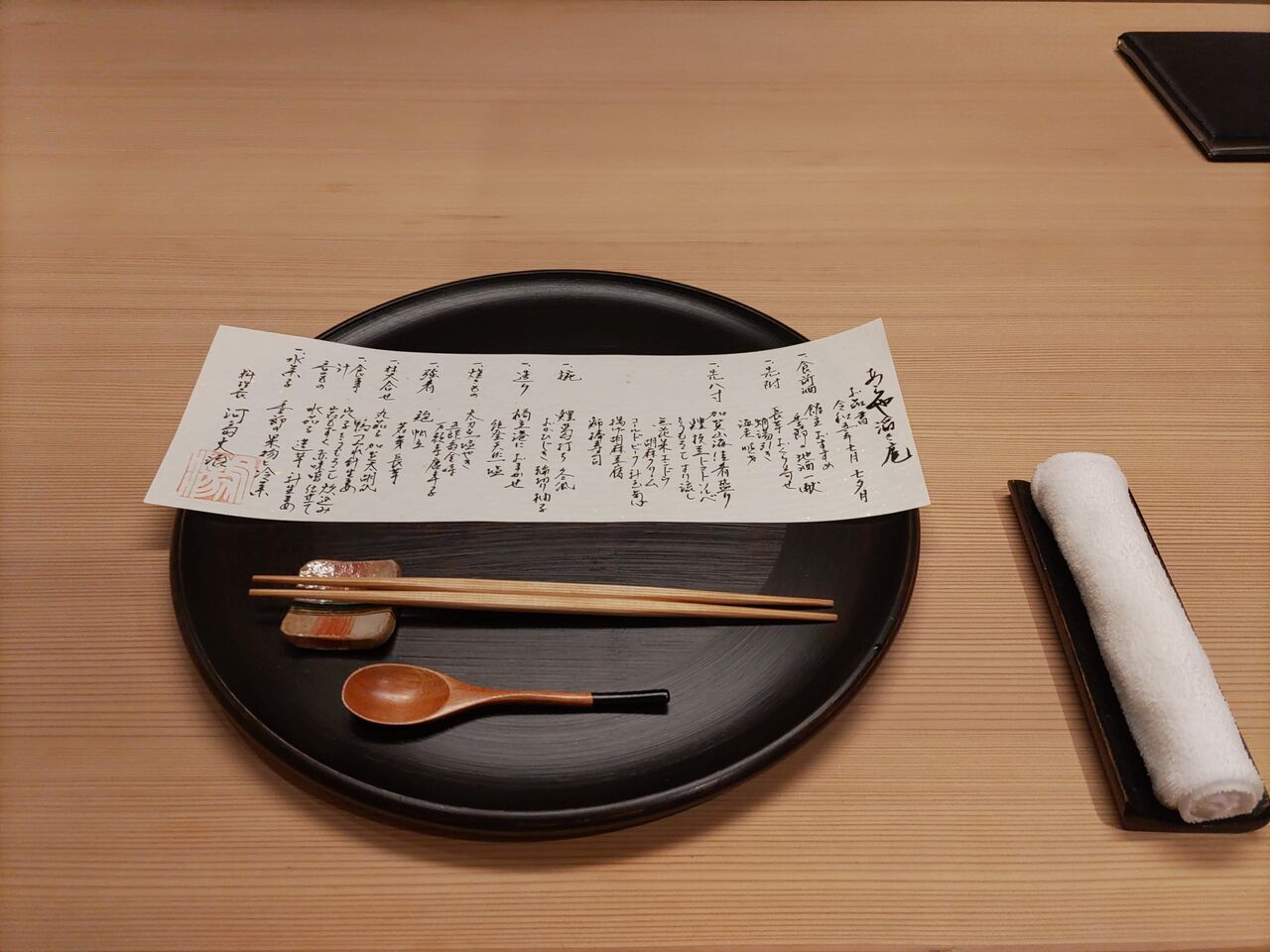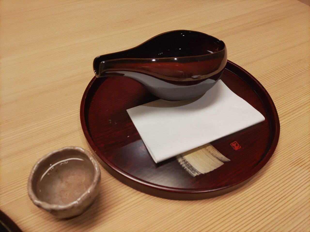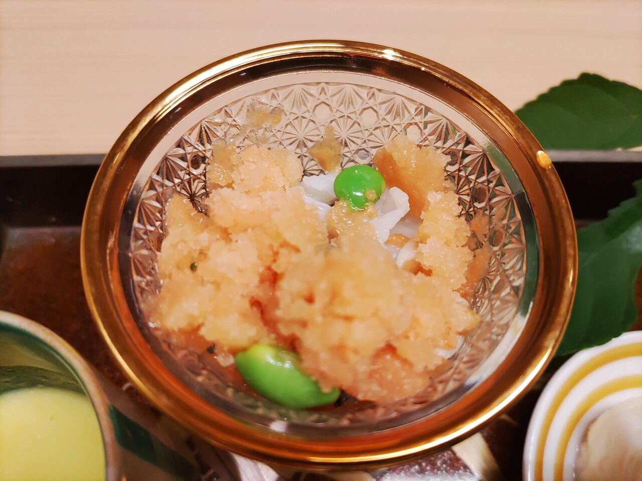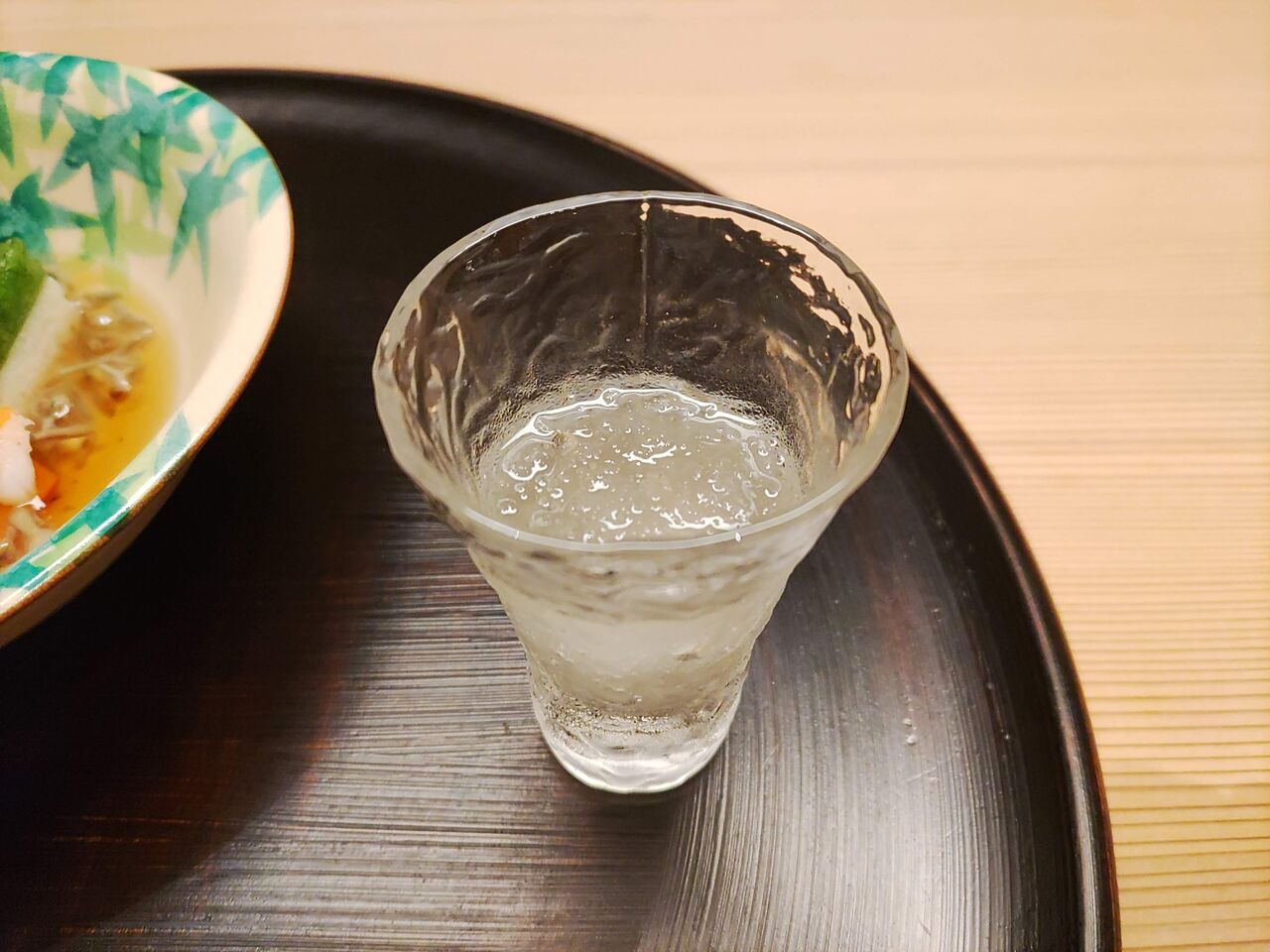 椀に露が打たれています。つくりたてを示す会席料理の作法です。