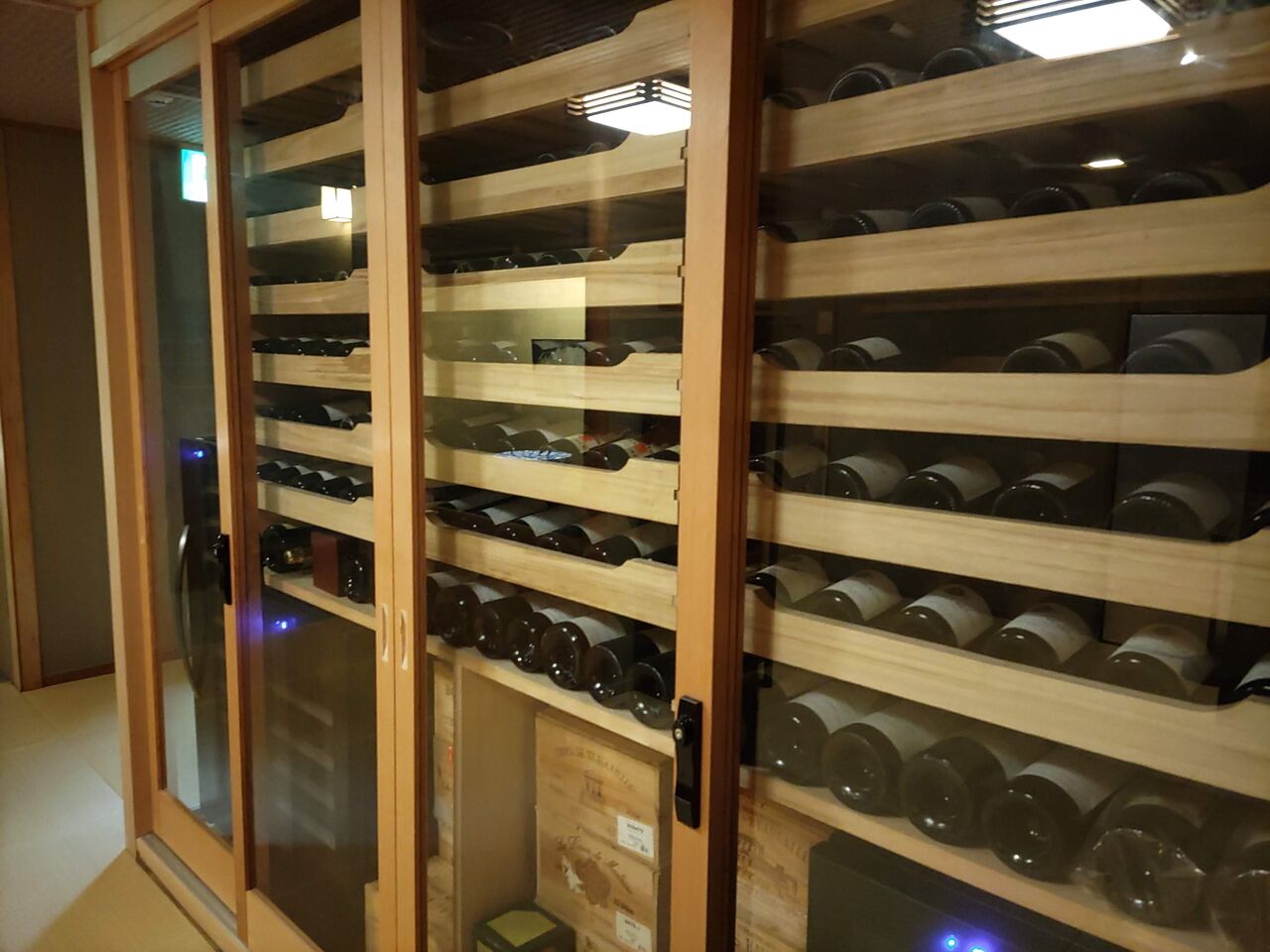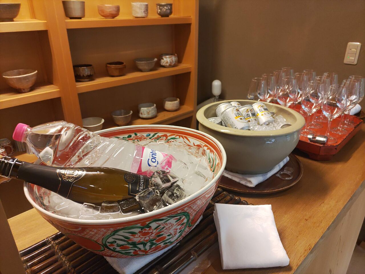 一番乗りだったので、仲居さんにシャンパンの抜栓をしてもらいます。