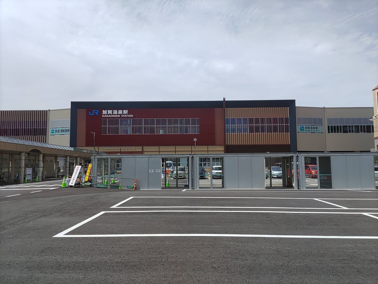 小松空港から、バス電車30分で、加賀温泉駅に到着。