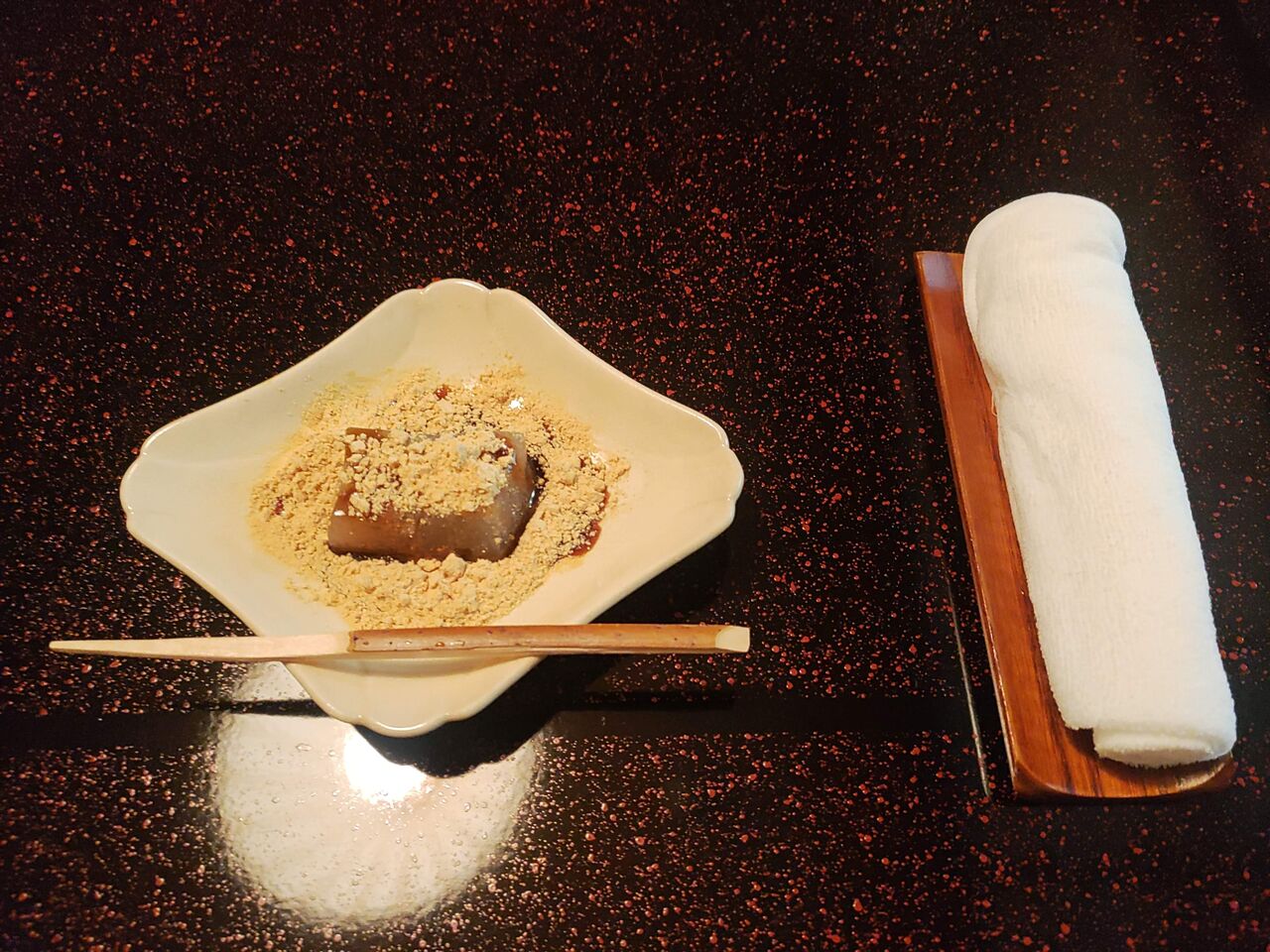 見た目はきんつばのような、丹波の大納言を寒天で包んだ菓子すぁう。