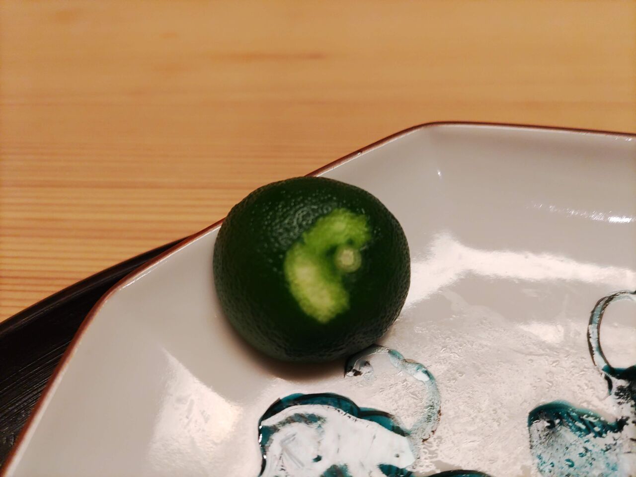 スダチが転がらないように、皮に刃が入れられています。細かい仕事しています。