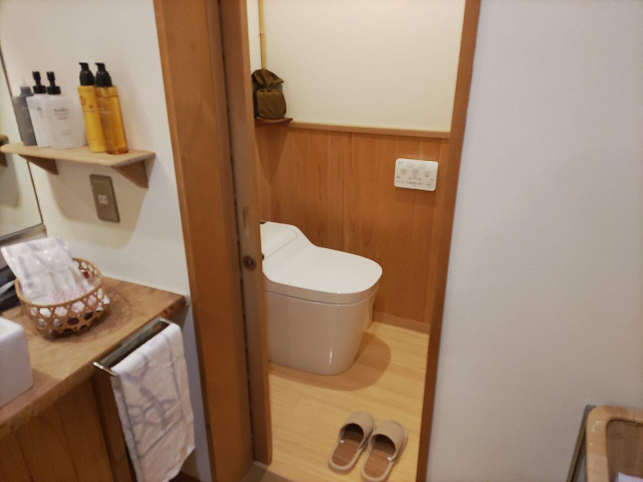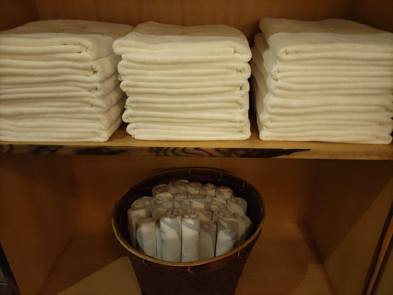 湯気をこもらせて、軽いスチームサウナのような空間です。
