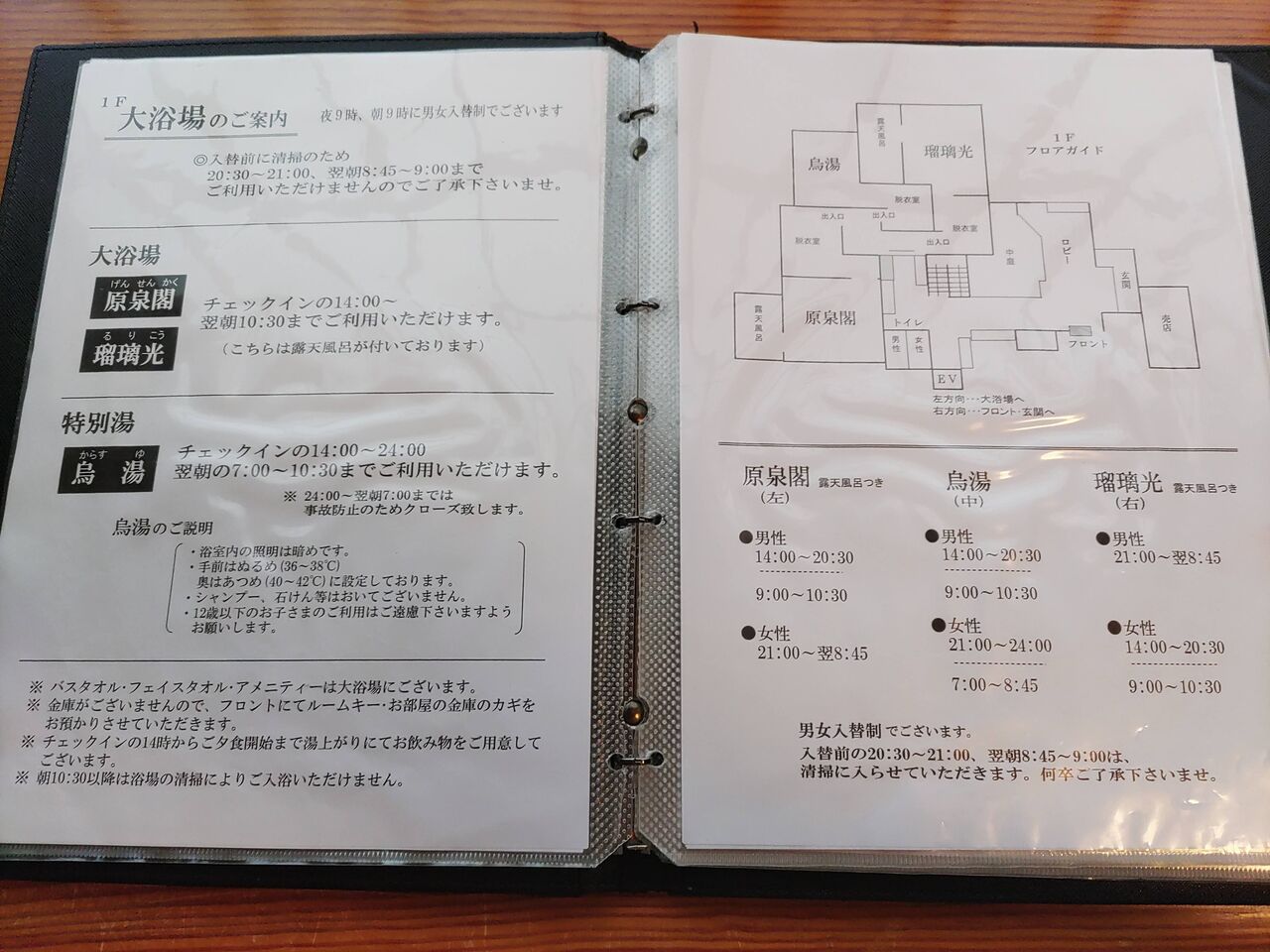 あらや滔々庵の温泉は、大浴場2つ「原泉閣」「瑠璃光」と特別風呂「烏湯」の計3つあり、