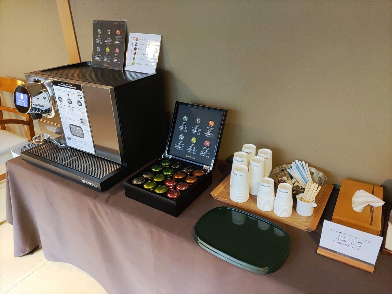 夜と翌朝まで置いているのは、2階コーヒーサービスです。