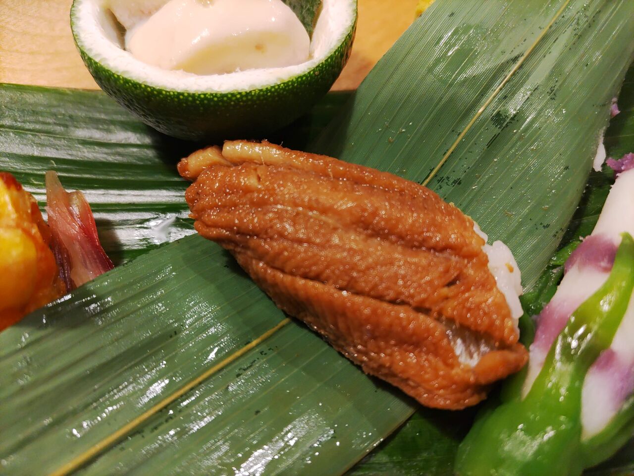 塩が多めなので少し取りながら、頭からがぶりと。