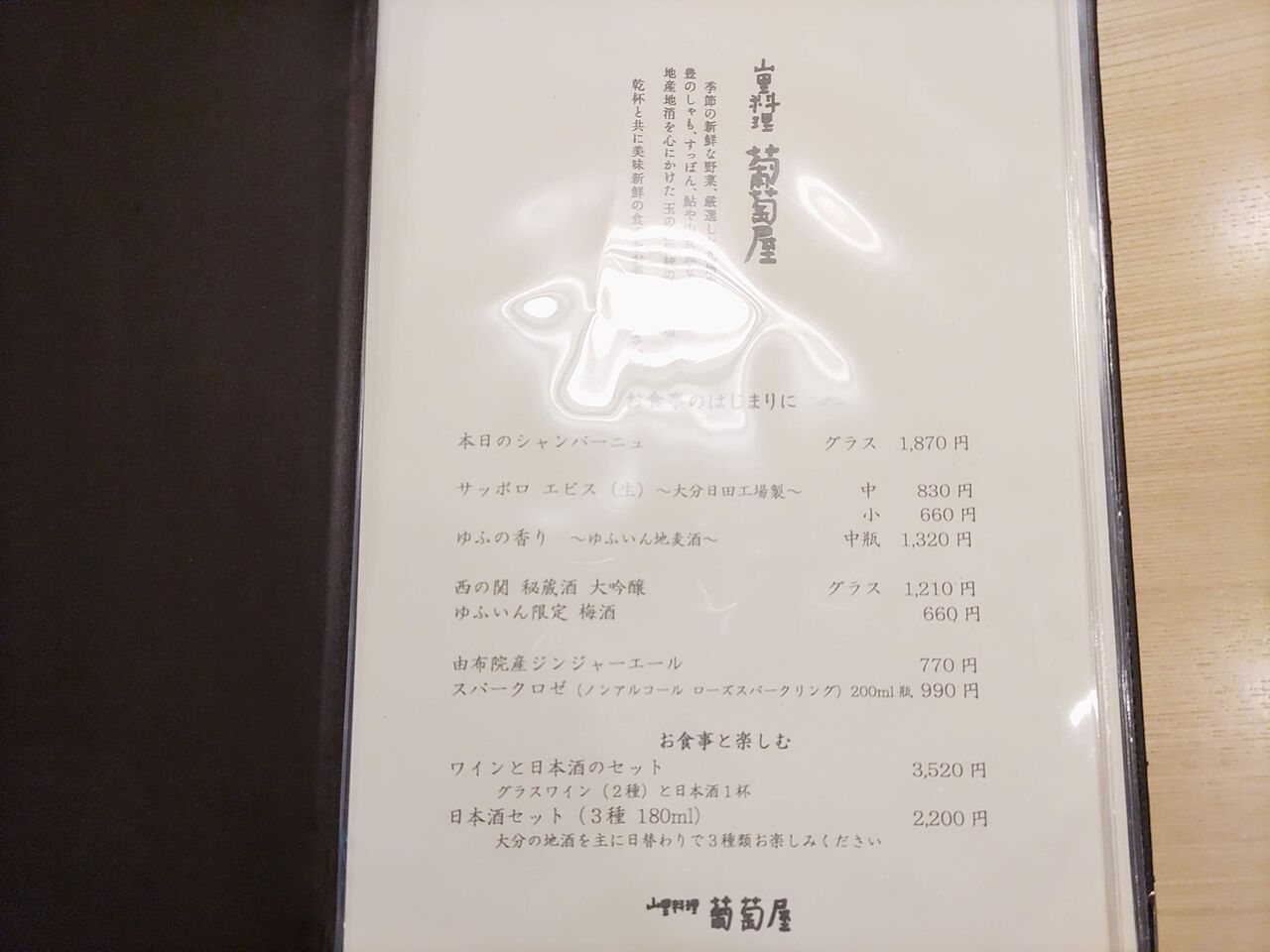 ビール、ゆふいんサイダー、水。ぜんぶ無料。