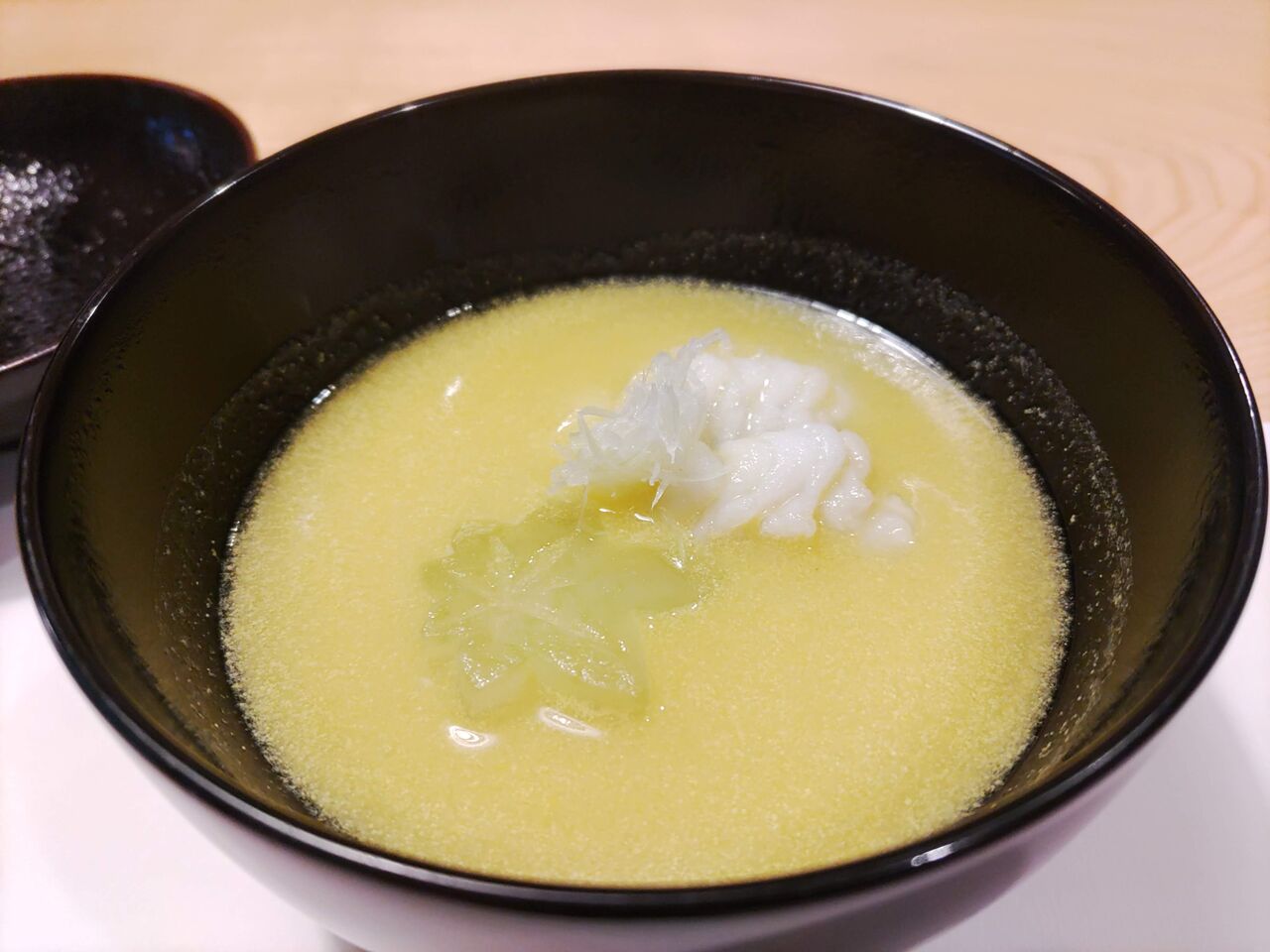もろこしすり流し、出汁ともろこしが相まったさらっとしたお澄まし。一口でうまいと。