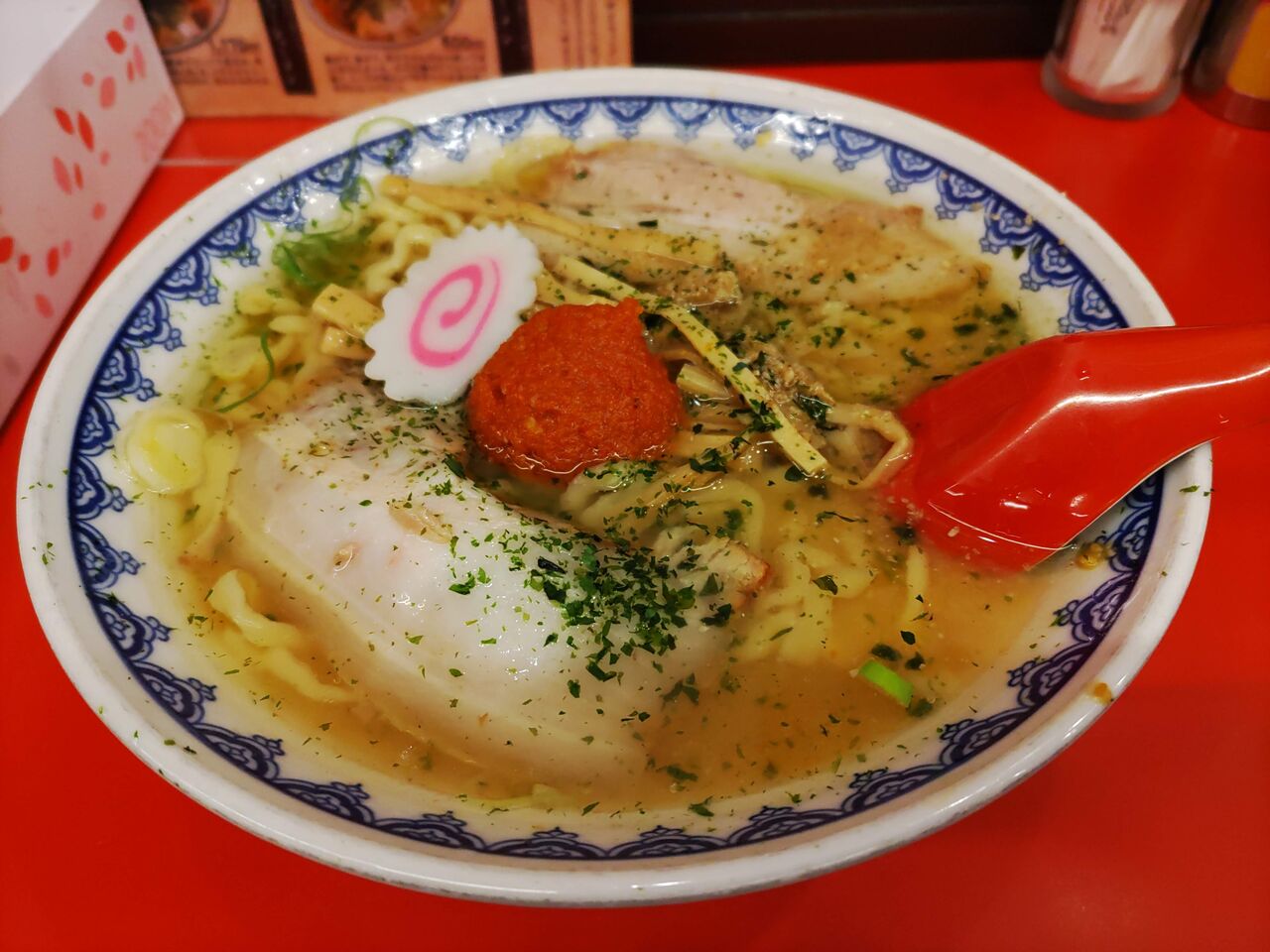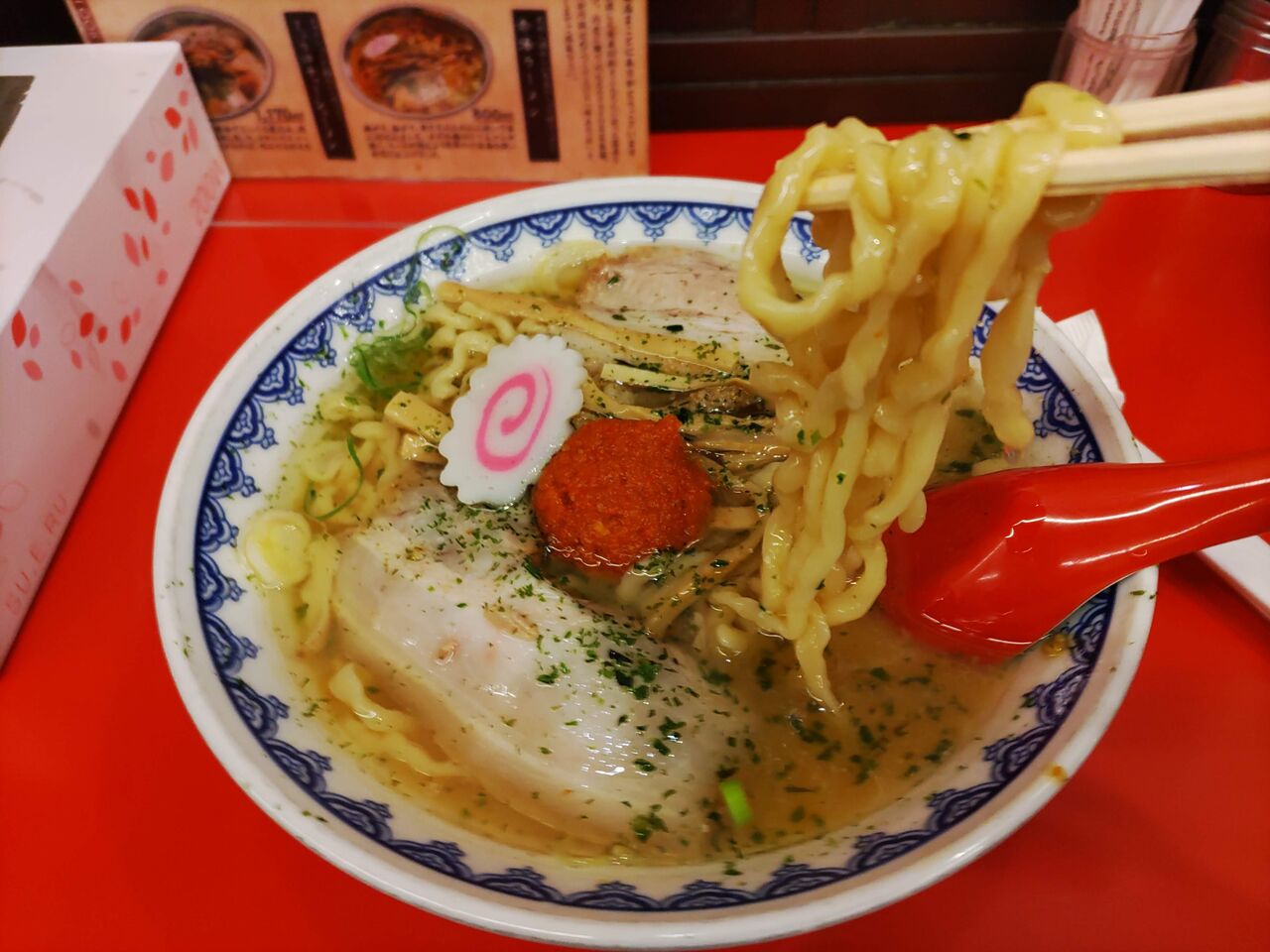 太麺のちぢれ麺がスープによくからむ、寒い地方のラーメンです。