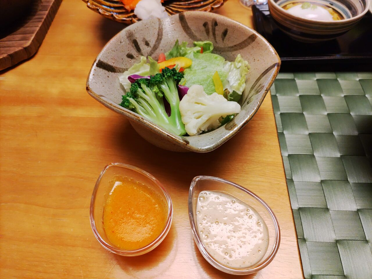 胡麻豆乳ドレッシングと有機ニンジンを使った野菜のすりおろしドレッシング