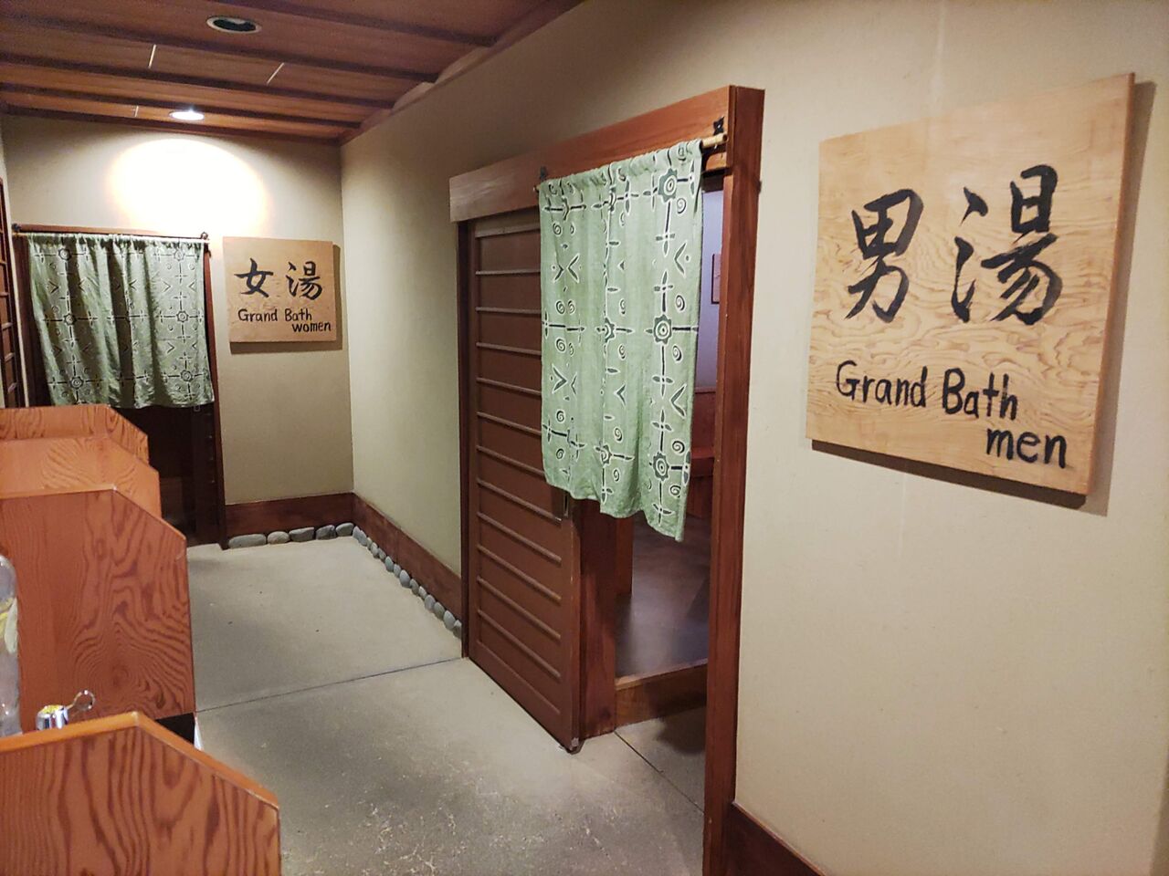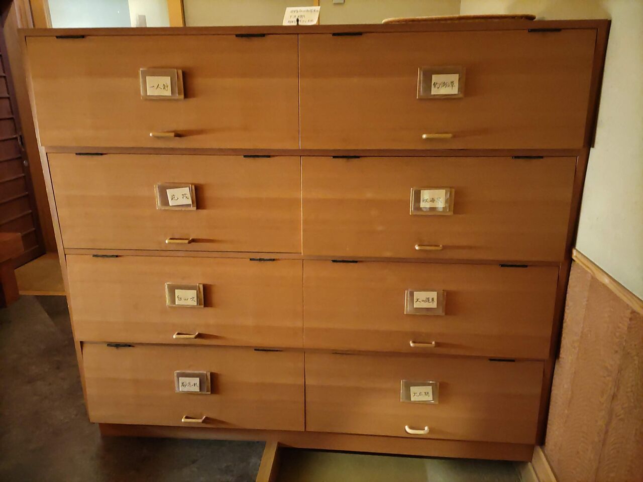 大浴場の下駄箱には、履物を間違えないようにと、部屋の名前で分かれています。