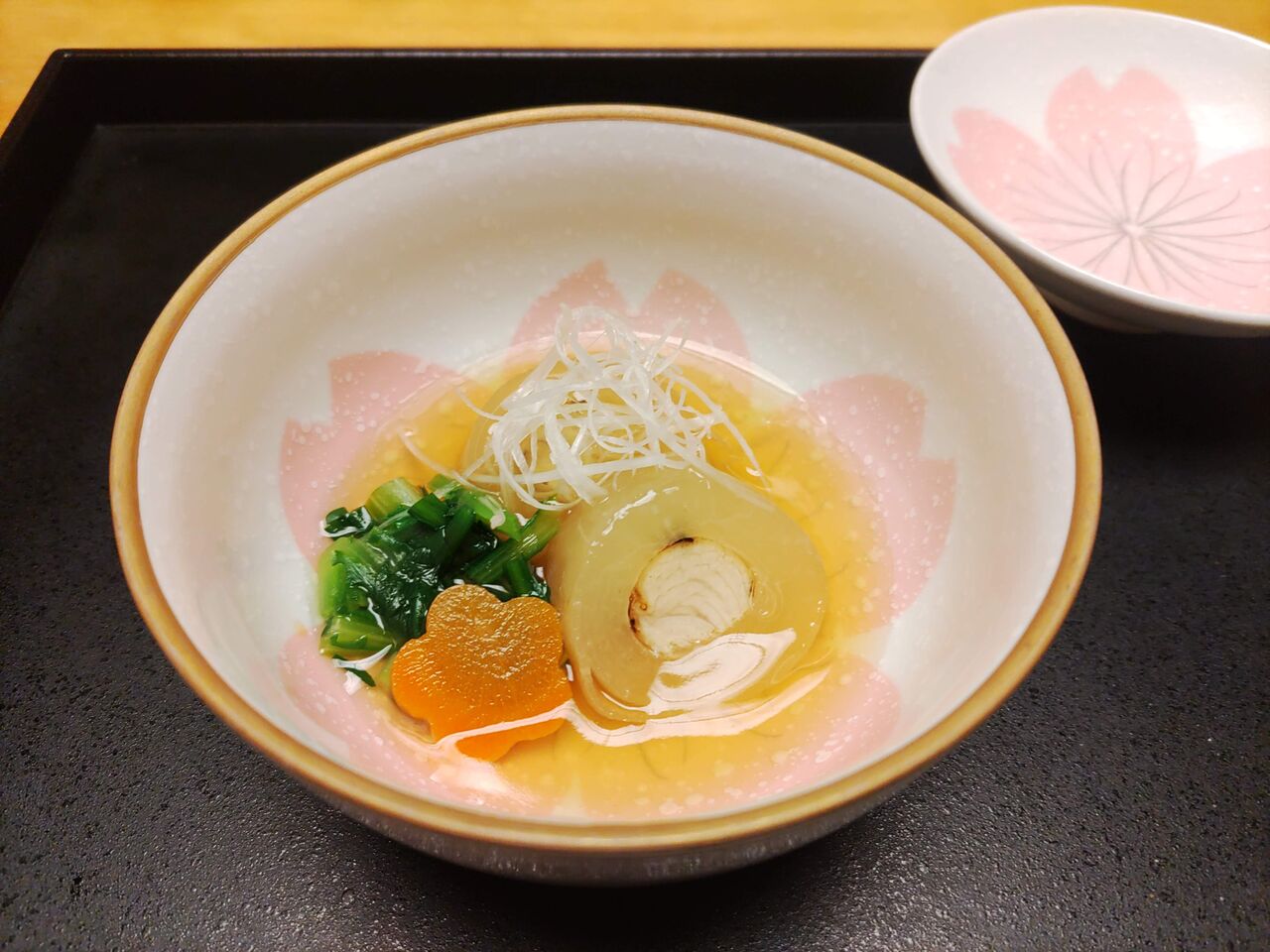 山茱萸の朝食は、芋煮巾着に驚かされました。