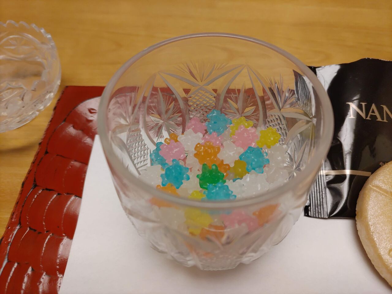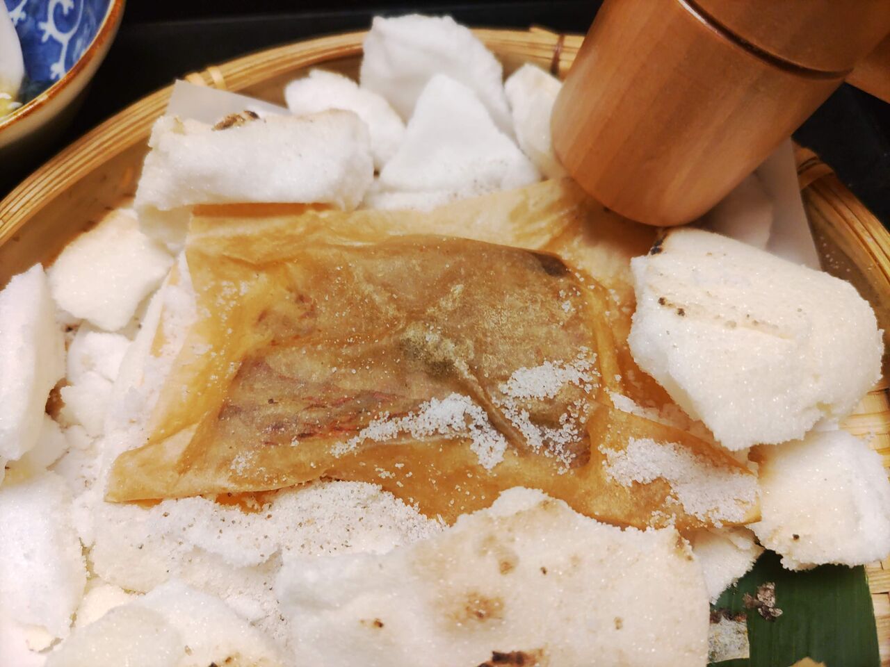 舌さわりは最中、味はバターのクッキー。不思議な味の一品です。