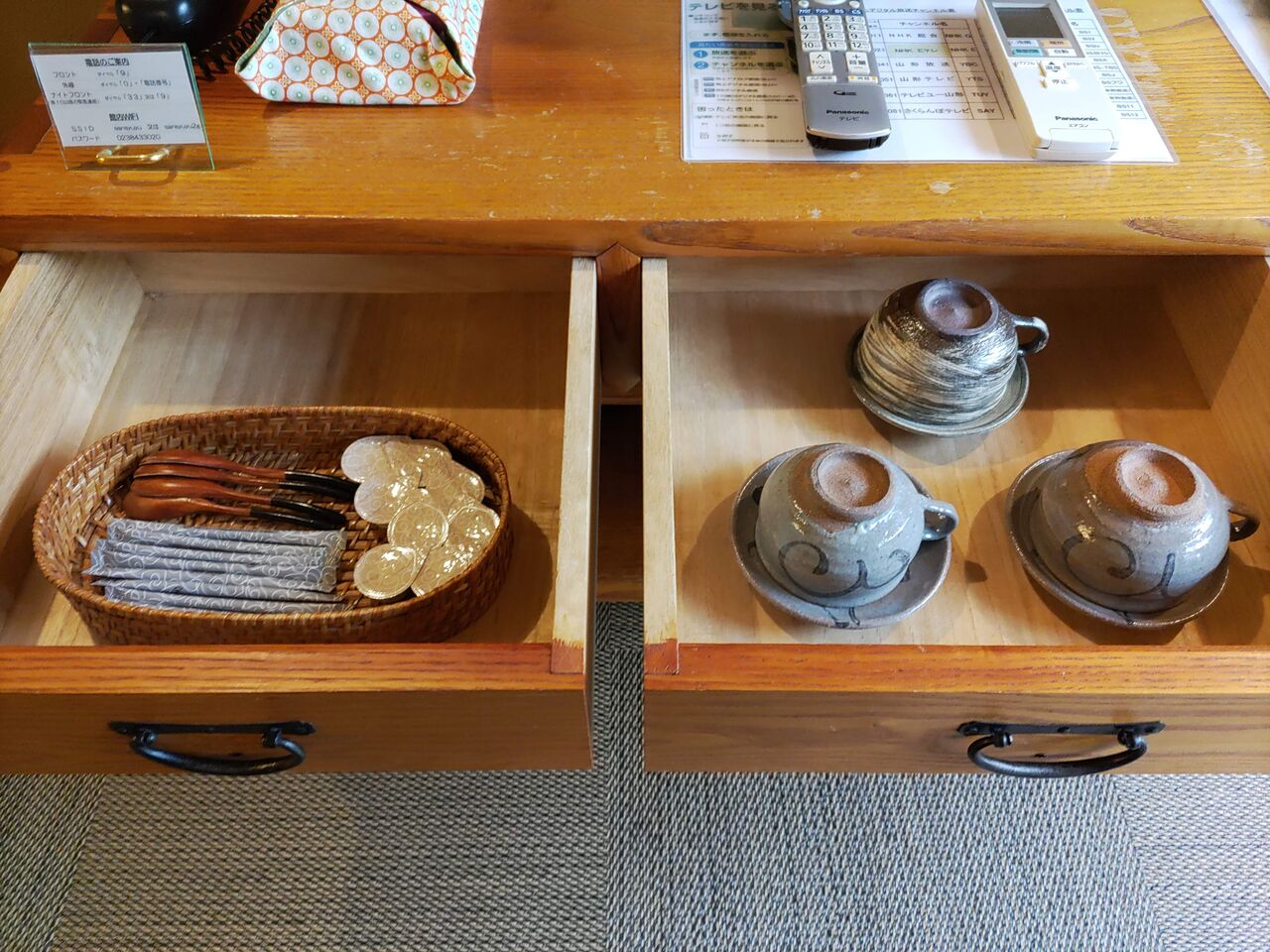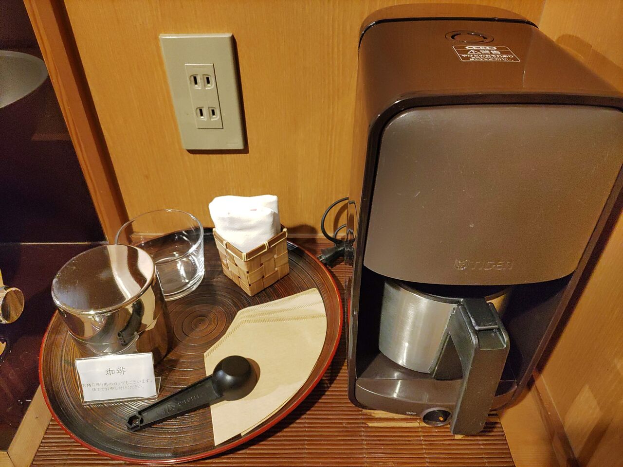 コーヒーメーカーも置いており、今どき珍しい粉コーヒーでの用意です。