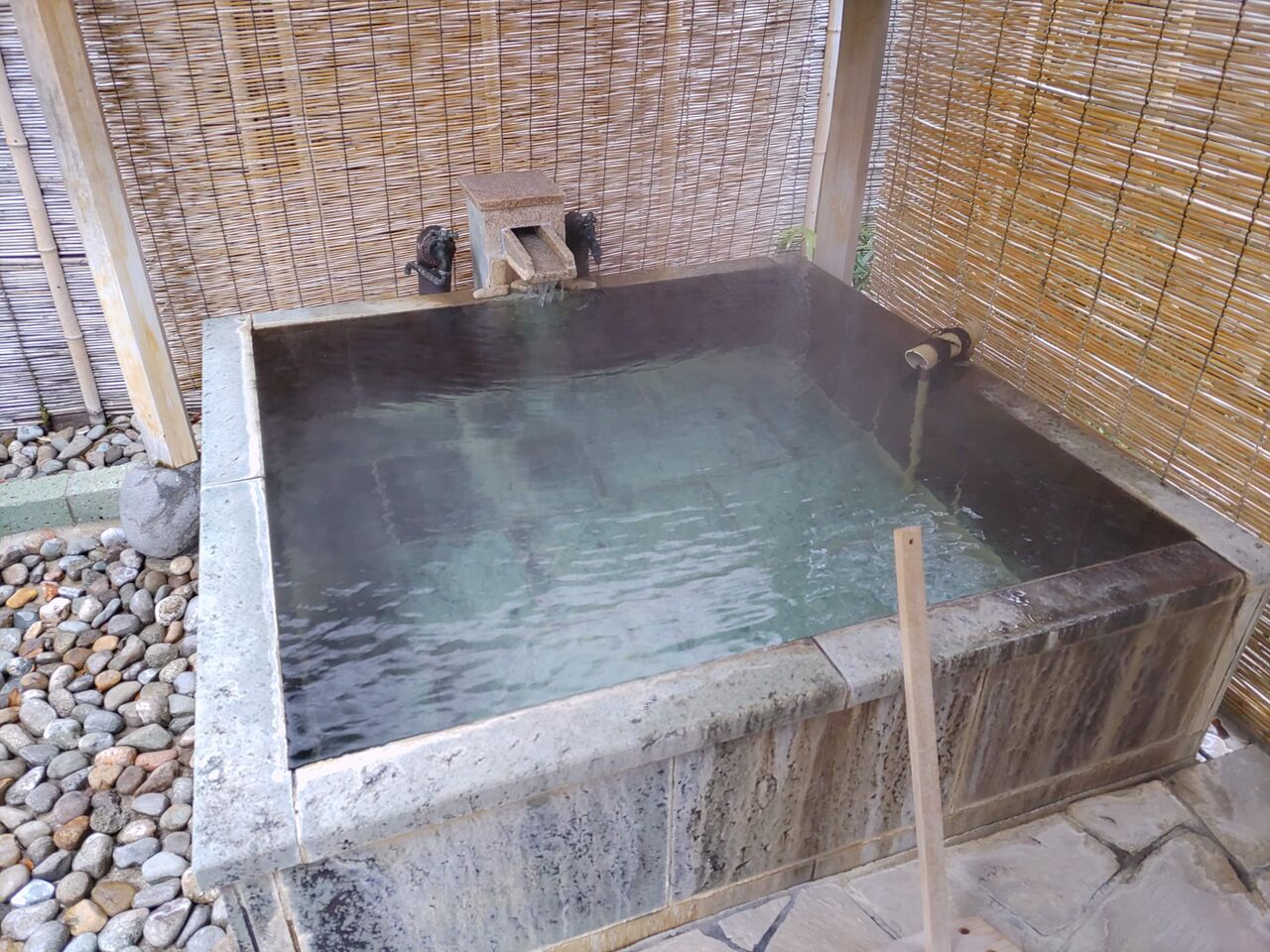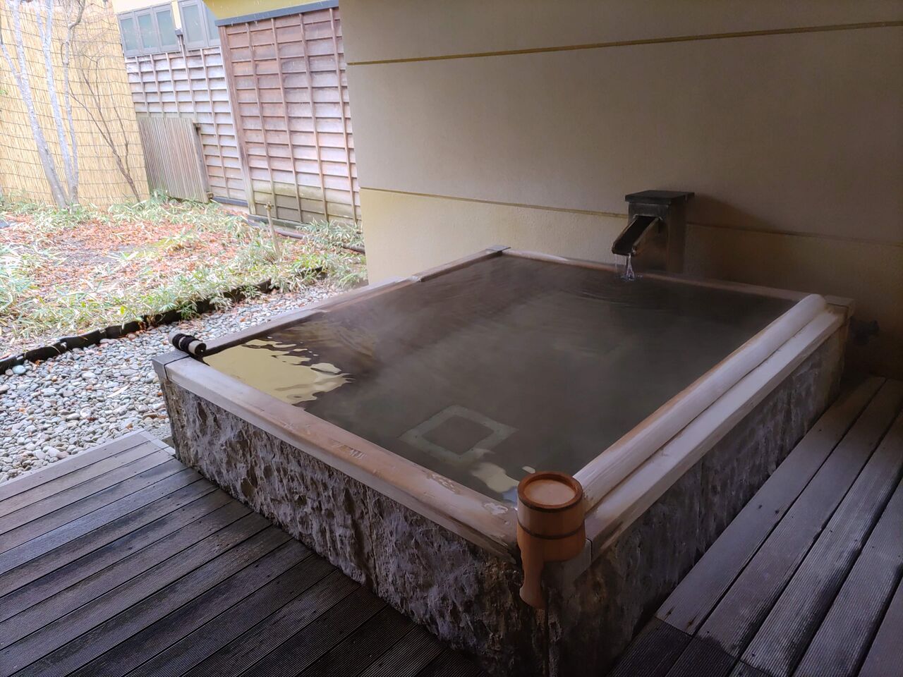 部屋の露天風呂は、ずっと入っていられるし、泉質濃厚。