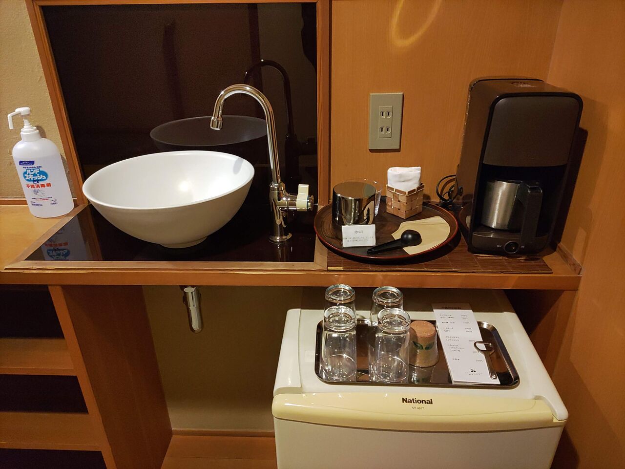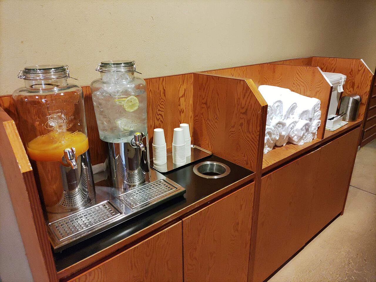 湯上がり処のドリンクは、オレンジジュースは、夕食前までの提供で、夜以降は撤去されていました。