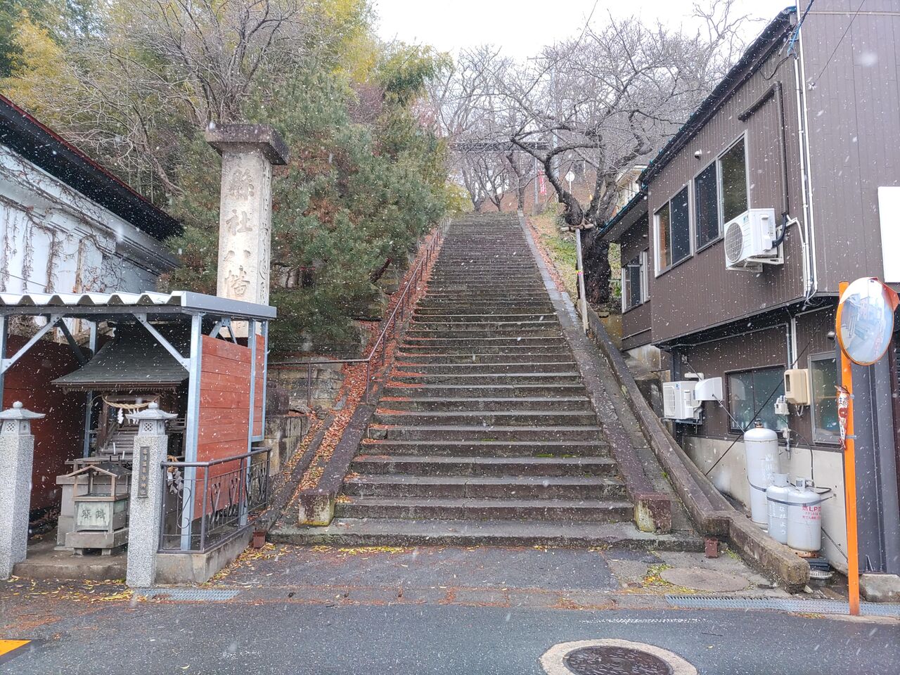 赤湯温泉の中心に鎮座する烏帽子山八幡宮。