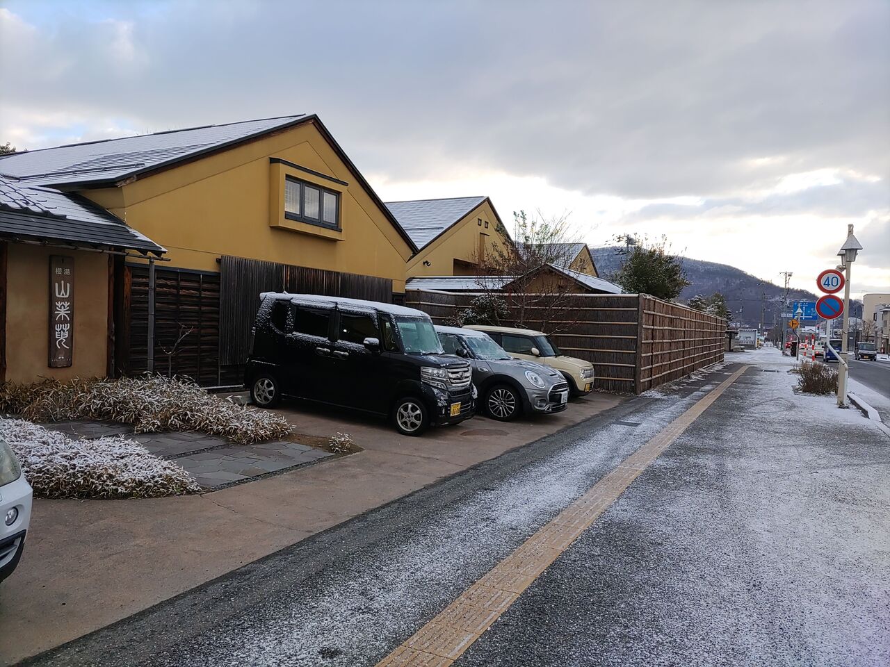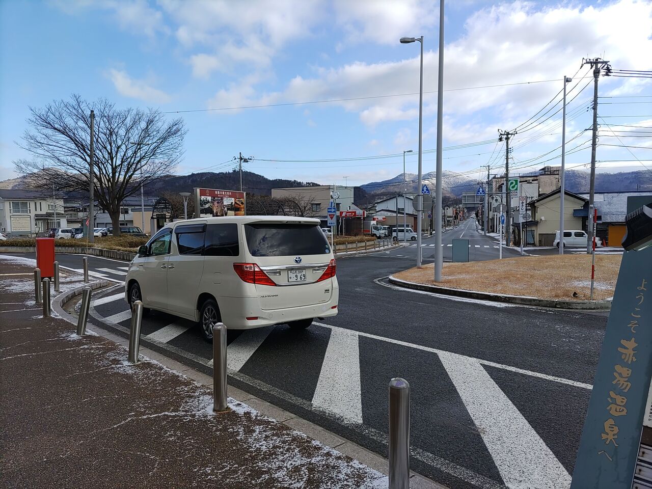 薄く雪の積もった玄関から、送迎者に乗り込み、赤湯駅に送迎してもらい、