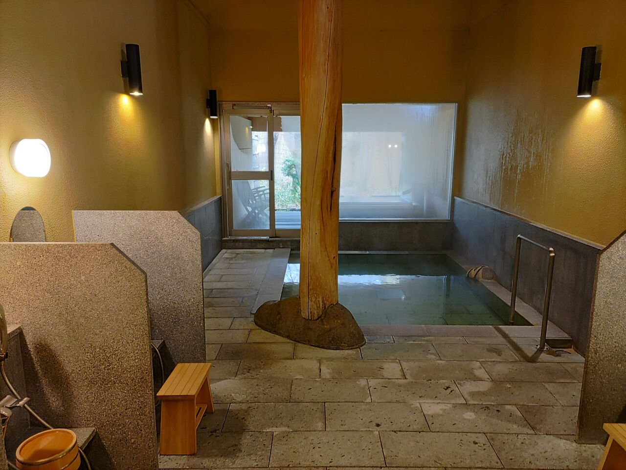 無色透明ですが、湯の花がたくさん。成分の濃い温泉です。