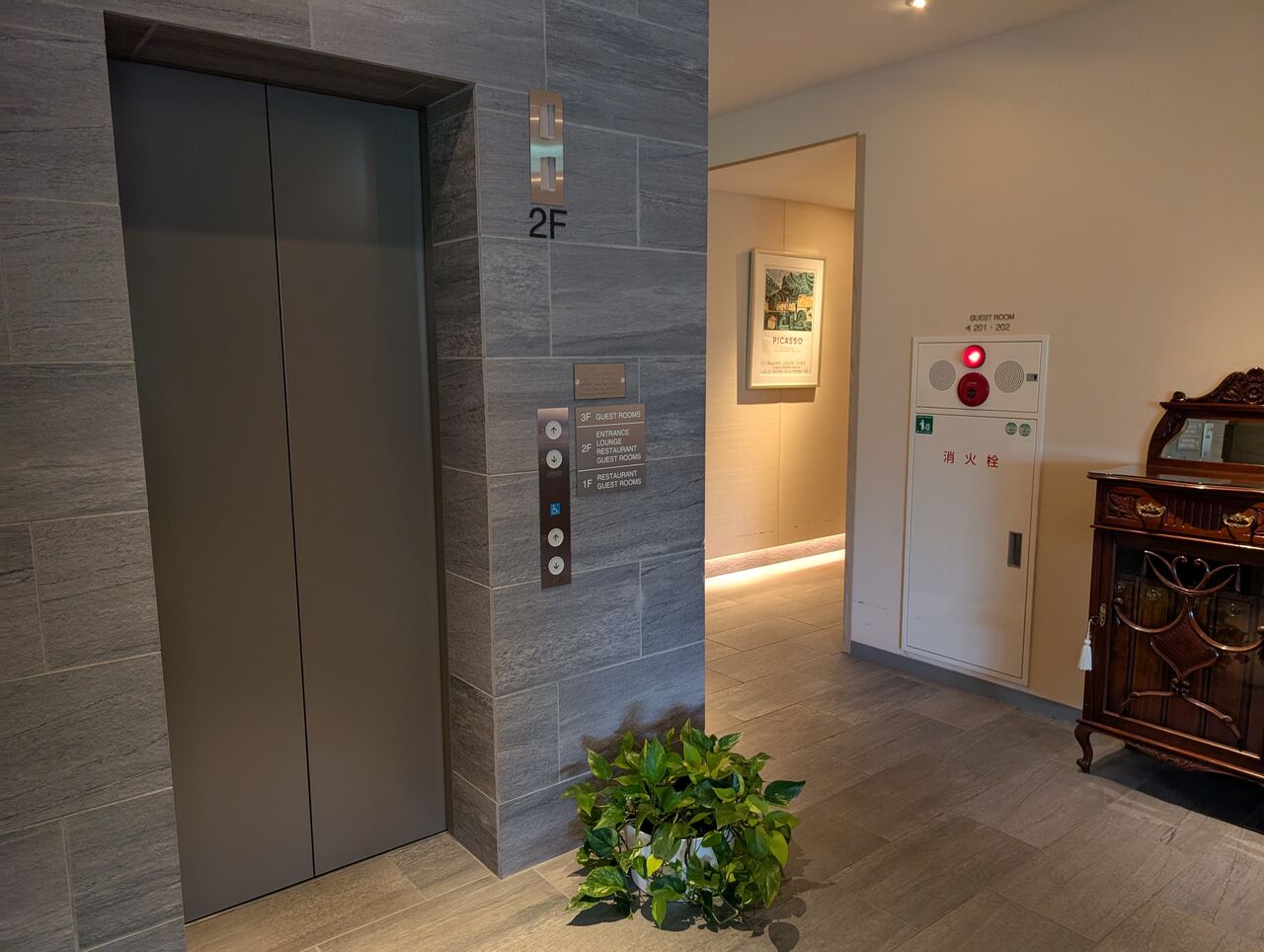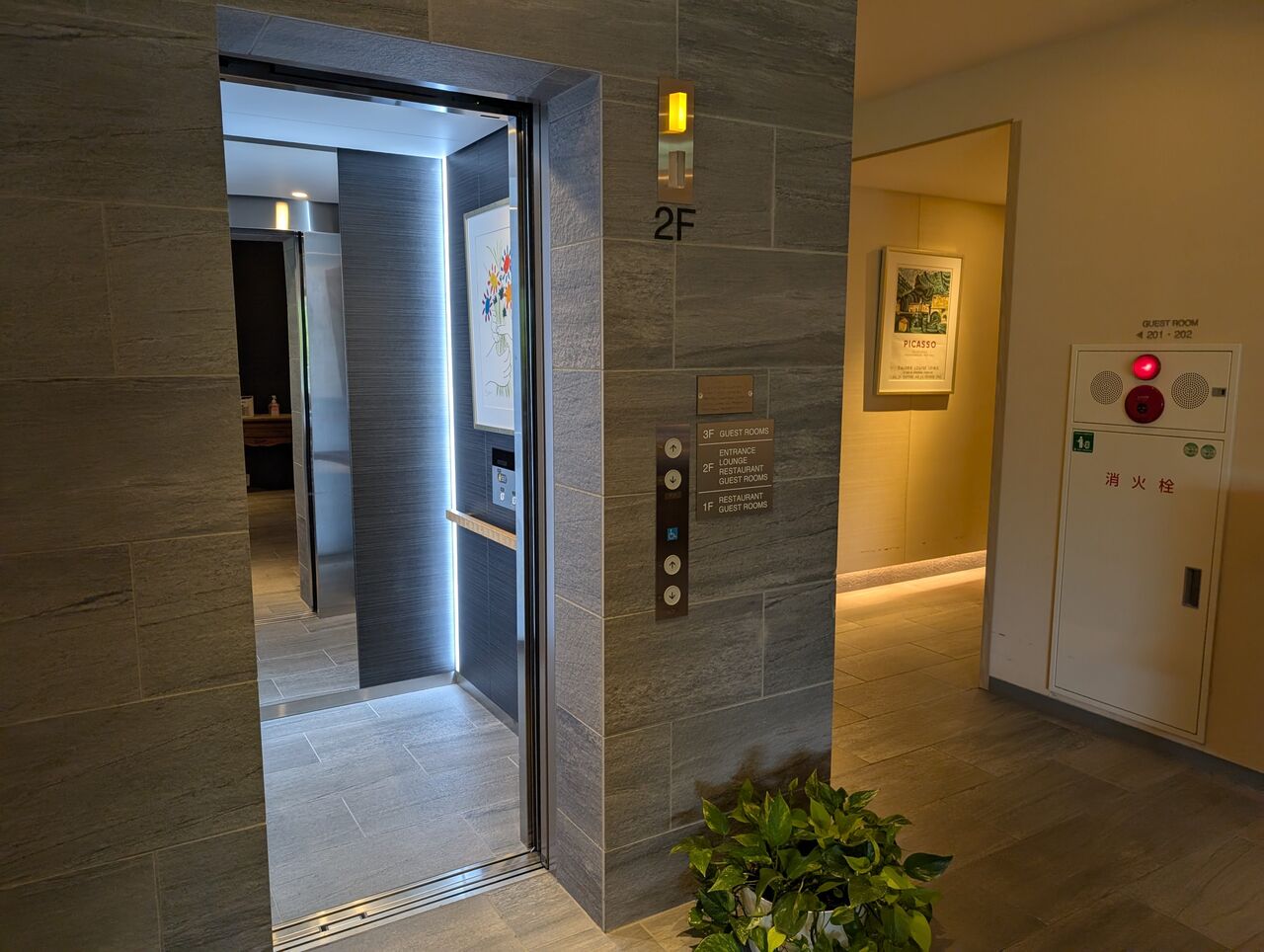 それでは部屋にご案内しますと、エレベーターに案内されます。