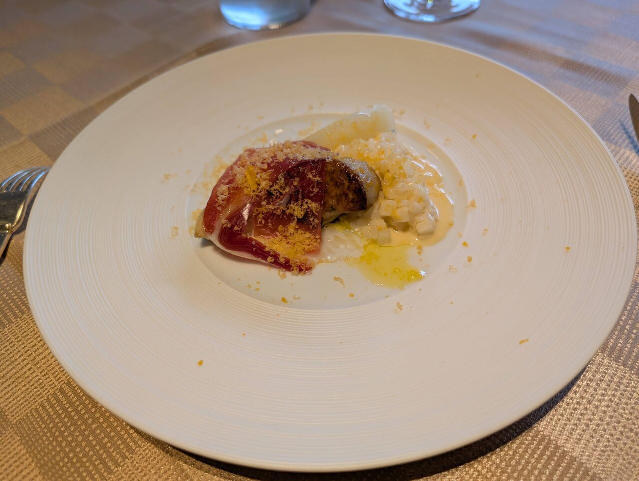リゾットはアスパラを刻んで和えて、ミモレットが加えられています。